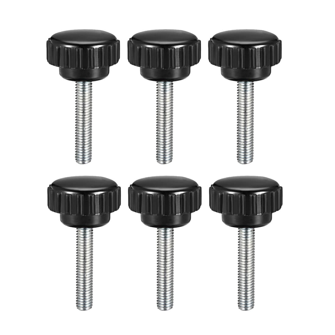 M5 x 25mm Male Thread Knurled Clamping Knobs Grip Thumb Screw on Type 6 Pcs - Black,Silver Tone