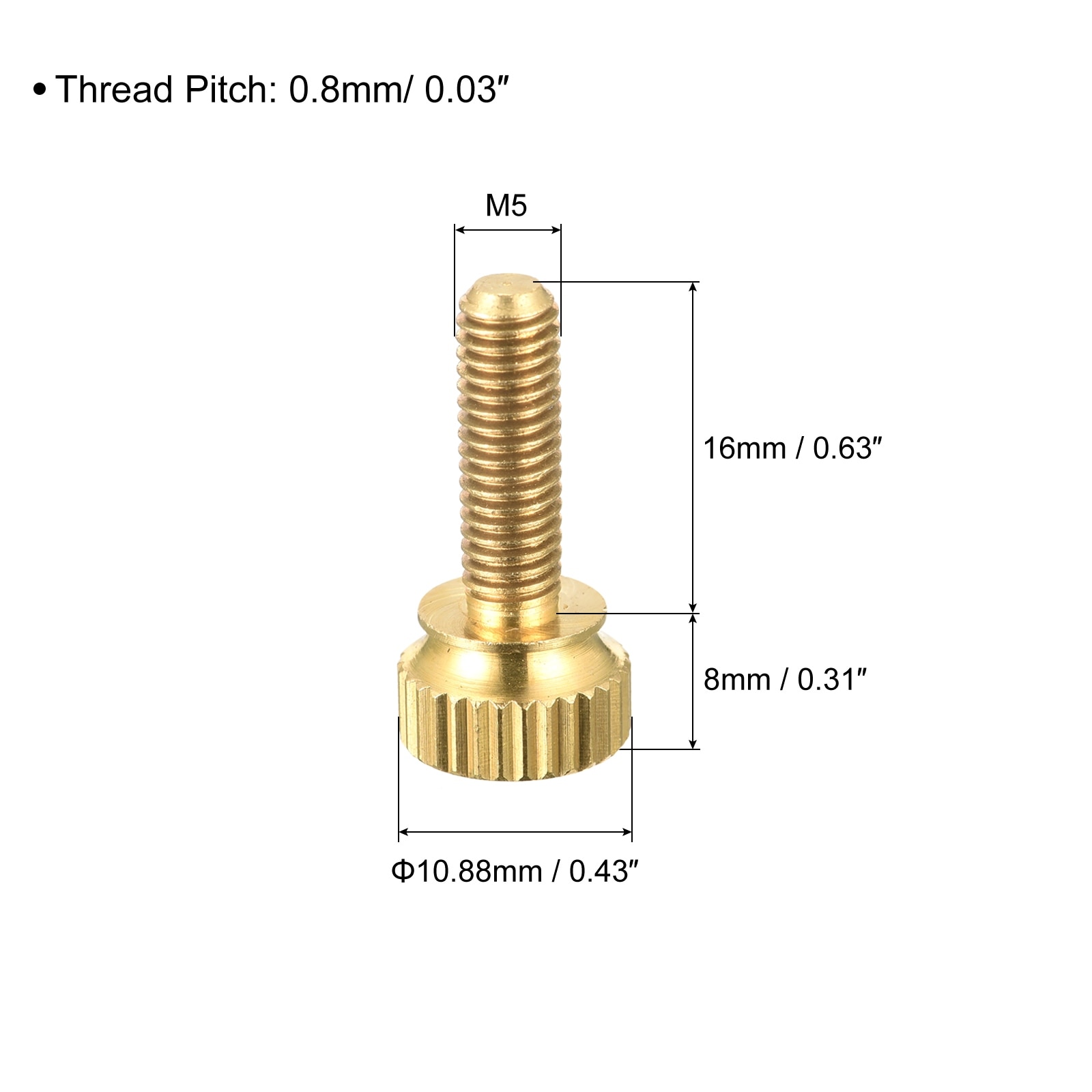 5Pcs Brass Knurled Thumb Screws, M3x8mm Flat Grip Bolt Knobs Fasteners - Brass Tone