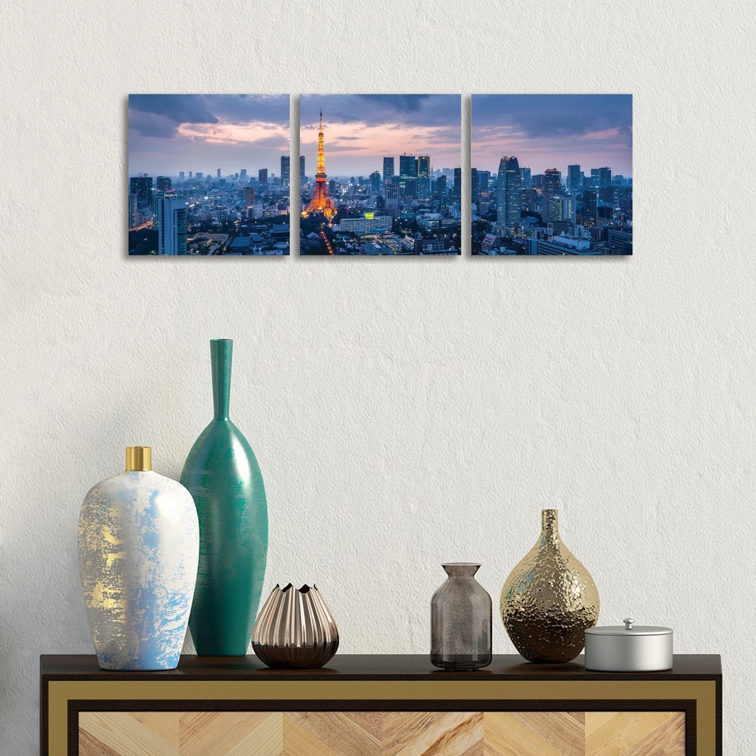 iCanvas "Tokyo Skyline Panorama At Night With Tokyo Tower" by Jan Becke 3-Piece Canvas Wall Art Set