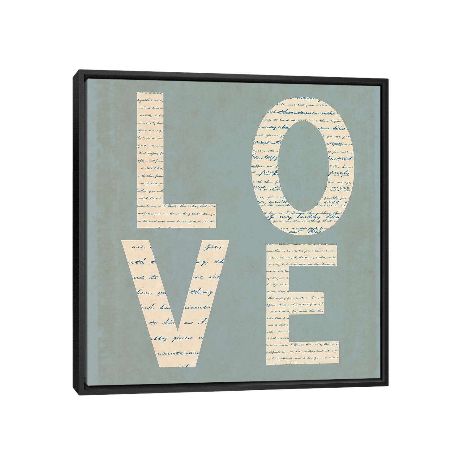 iCanvas "Love Script on Blue" by Tom Quartermaine Framed