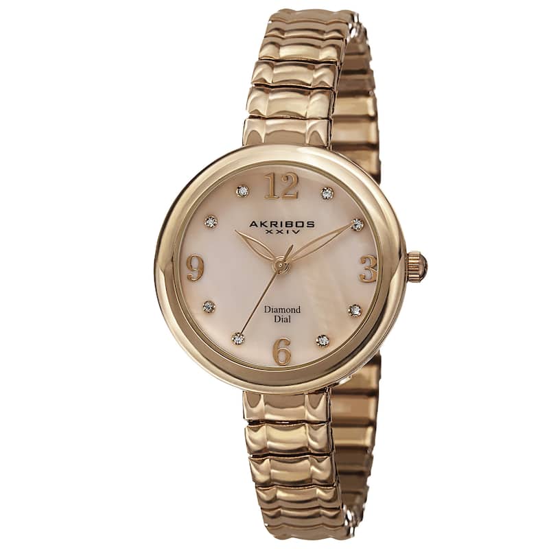 Akribos XXIV Women's Quartz Diamond Markers Expandable Gold-Tone Bracelet Watch