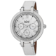 Burgi Women's Crystal-Accented Quartz Multifunction Leather Silver-Tone Strap Watch