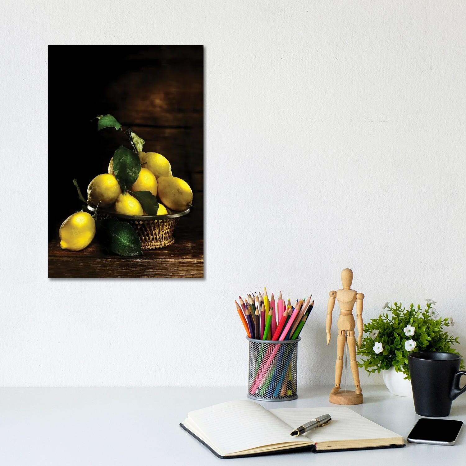 iCanvas "Yellow Lemon Into A Basket Over A Wooden Table" by Alessandro Della Torre Canvas Print