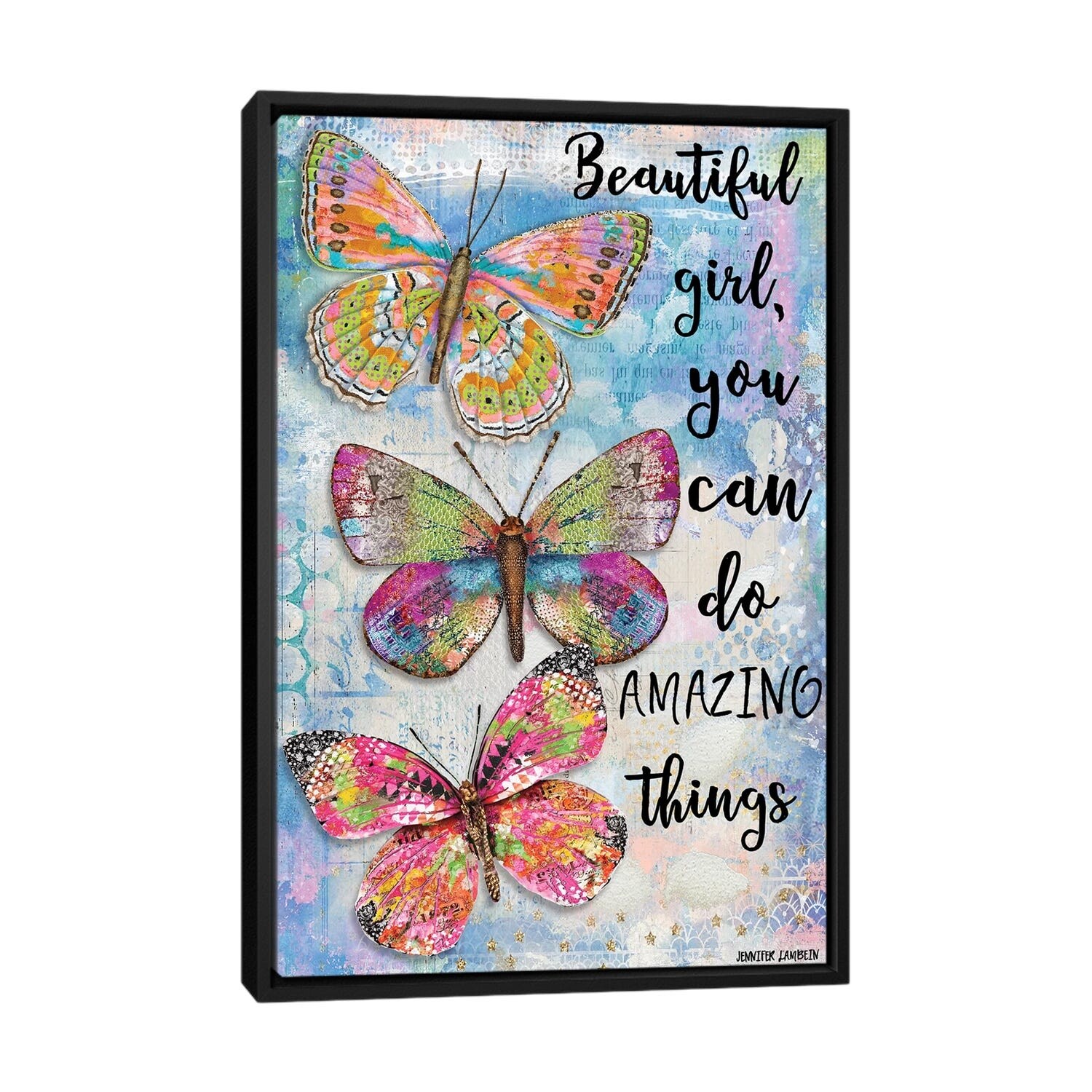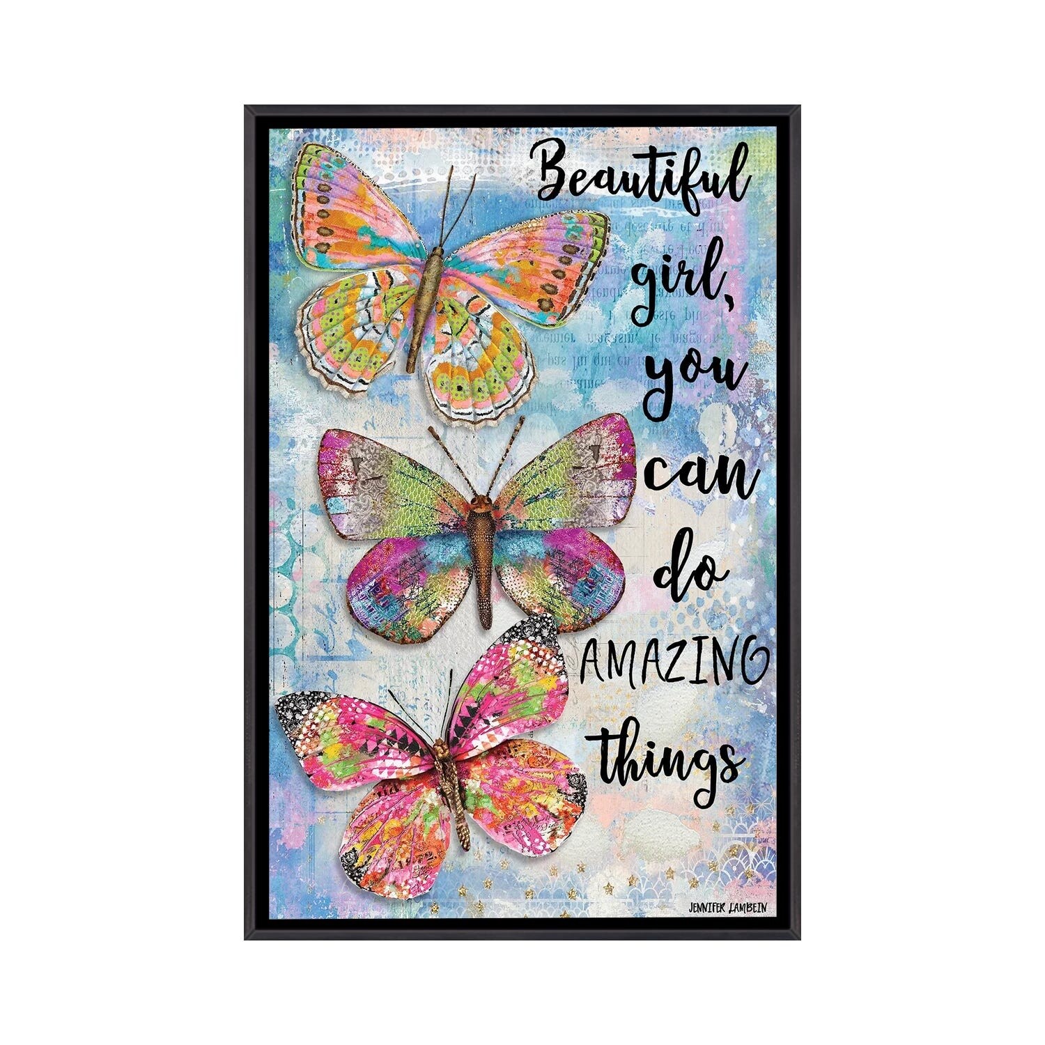 iCanvas "Beautiful Girl Butterfly Trio" by Jennifer Lambein Framed