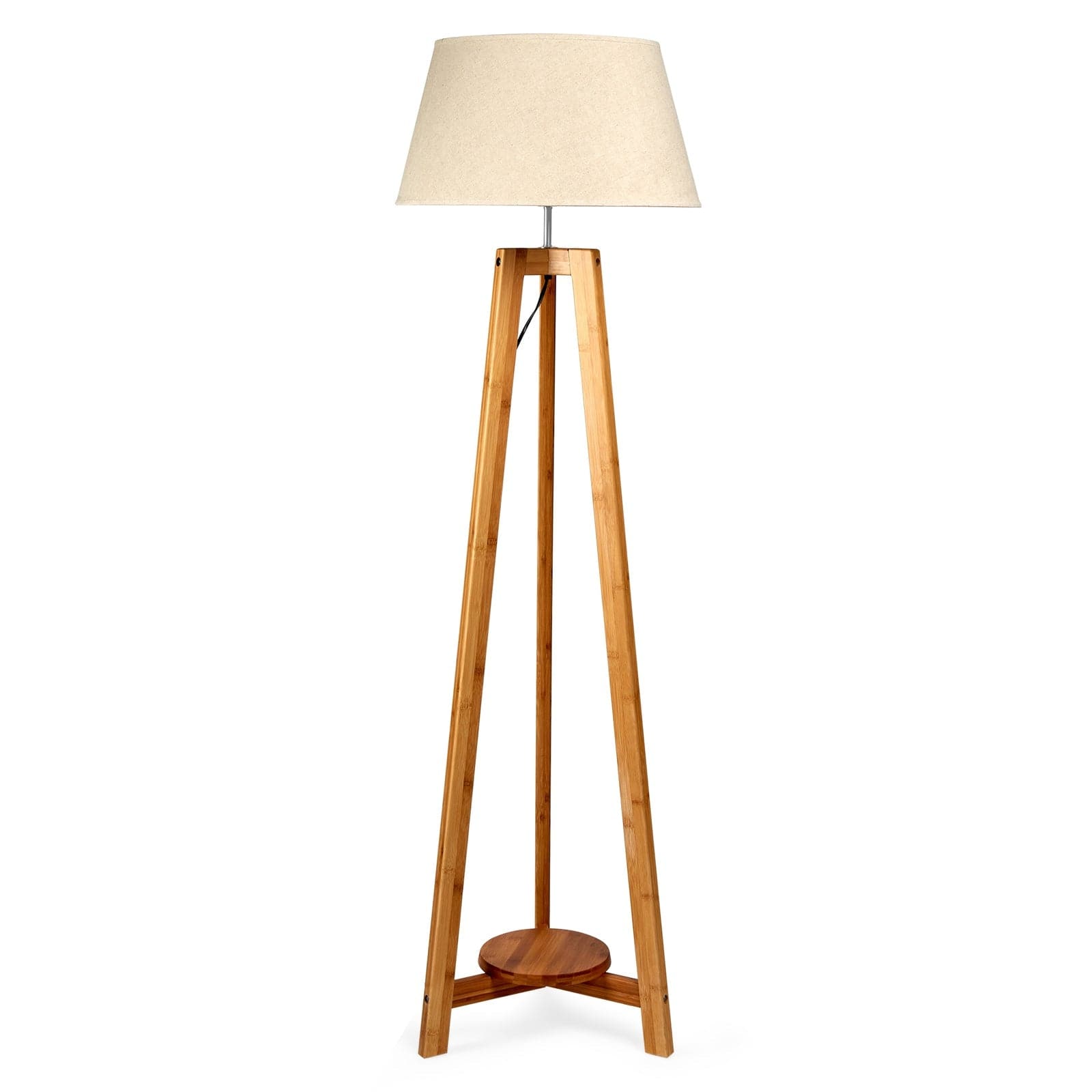 155cm Large Bamboo Wooden Tripod Floor Lamp w Beige Linen Light Shade