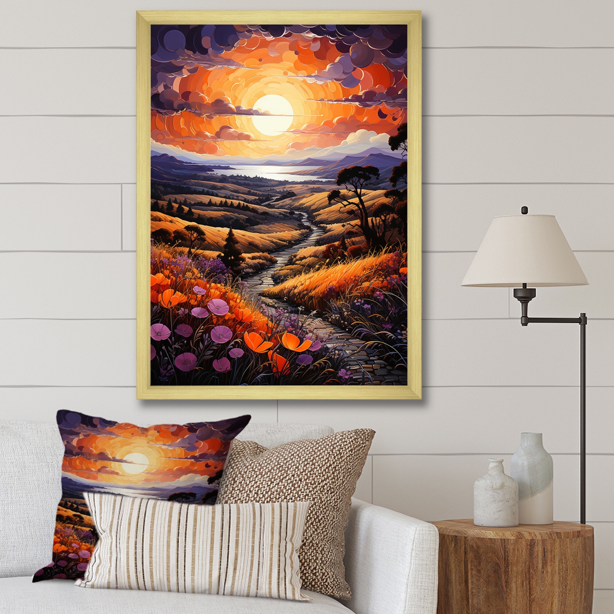 Designart "Meadow Twilight Pointillism" Meadow Framed Wall Decor