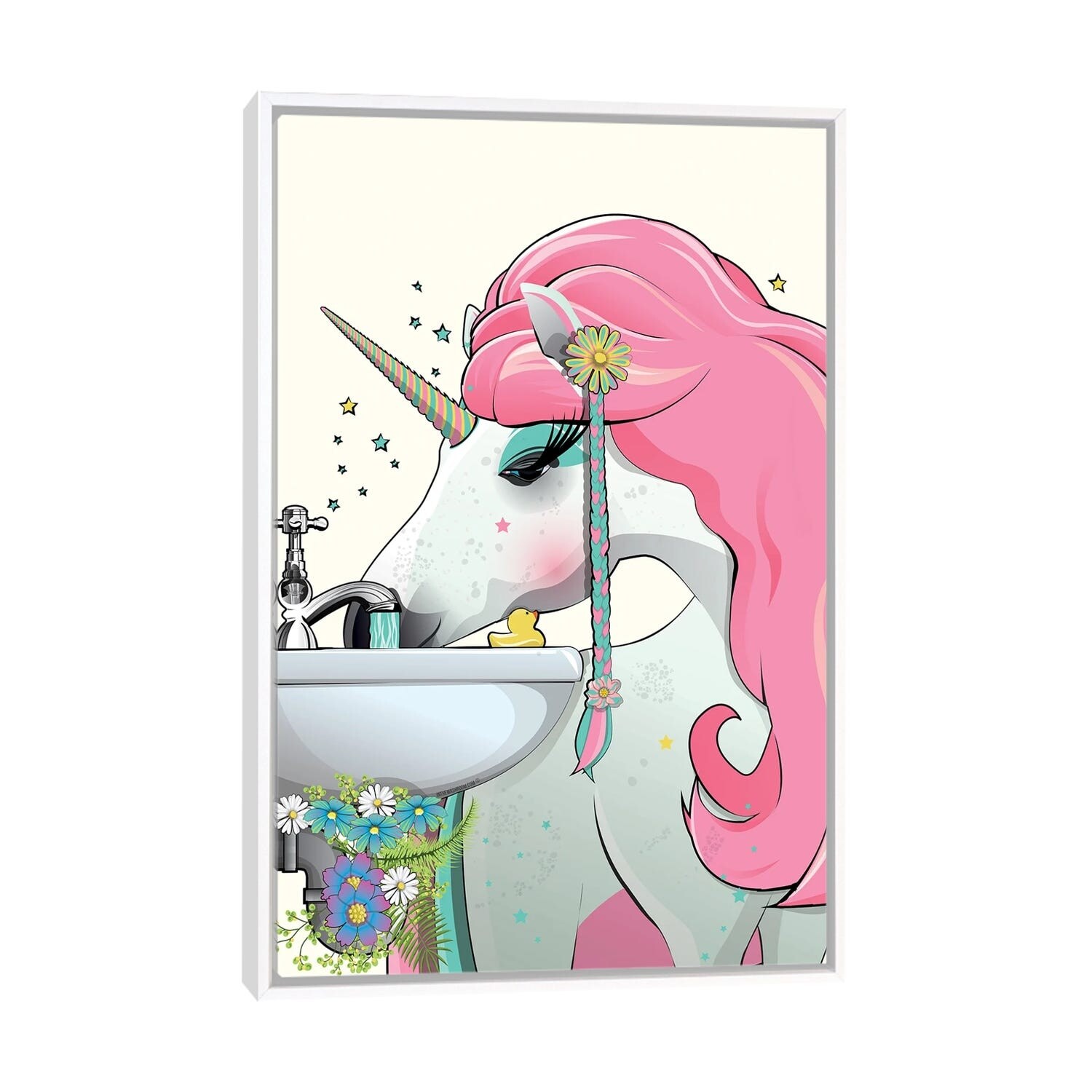 iCanvas "Unicorn Bathroom" by WyattDesign Framed