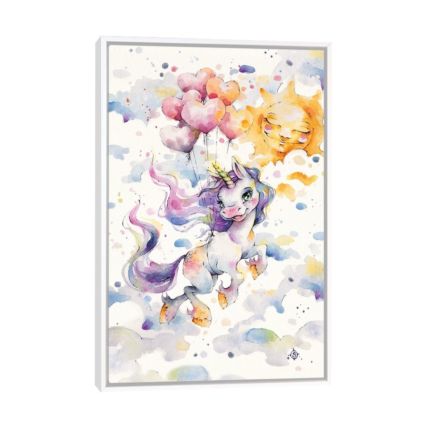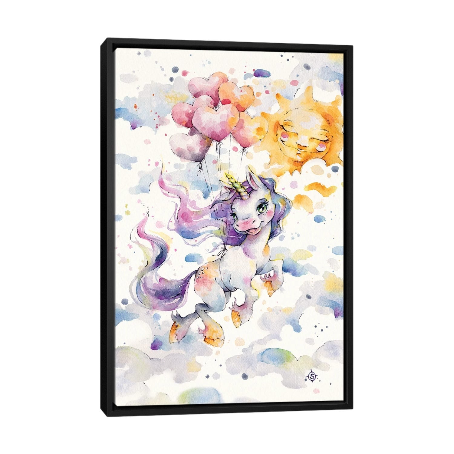 iCanvas "Unicorn Fly With Heart Balloons" by Art Mirano Framed Canvas Print
