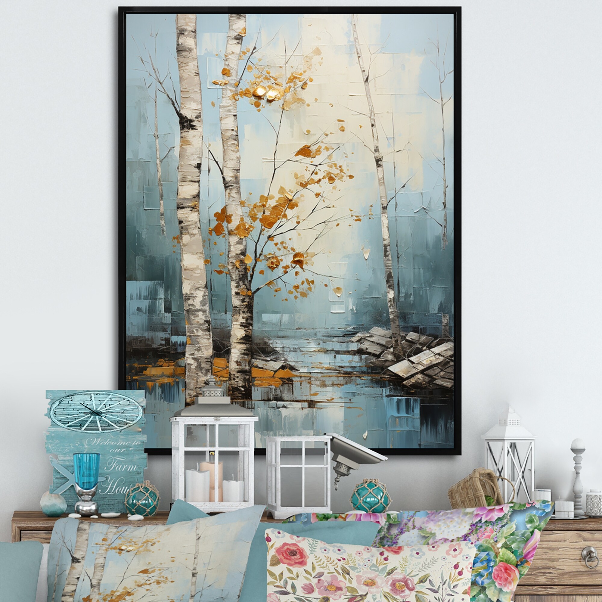 Designart "Birch Woods Winter Whispers VII" Tree Birch Framed Canvas Print