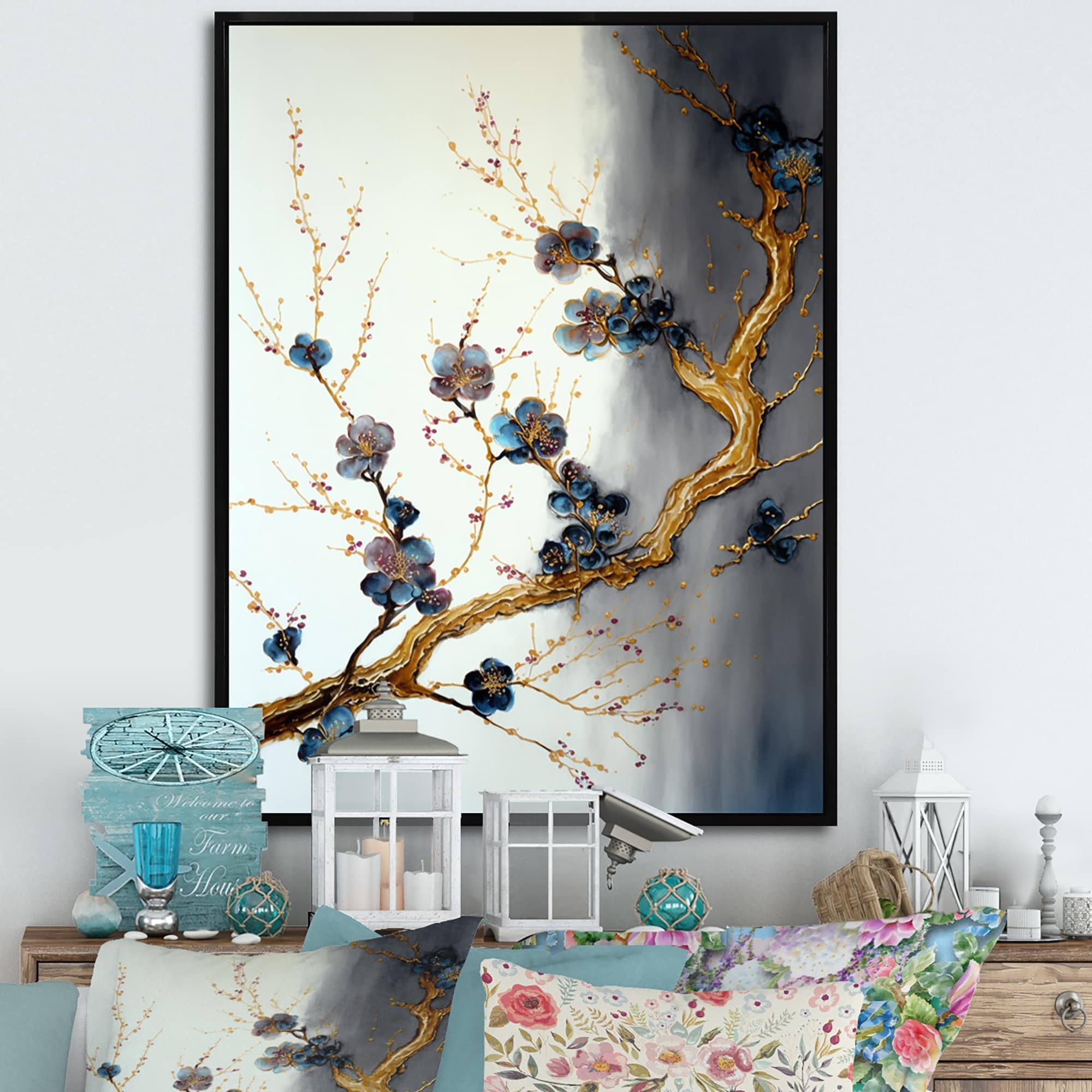 Designart "Blue Cherry Blossom Branch VII" Modern Framed Canvas Art Print