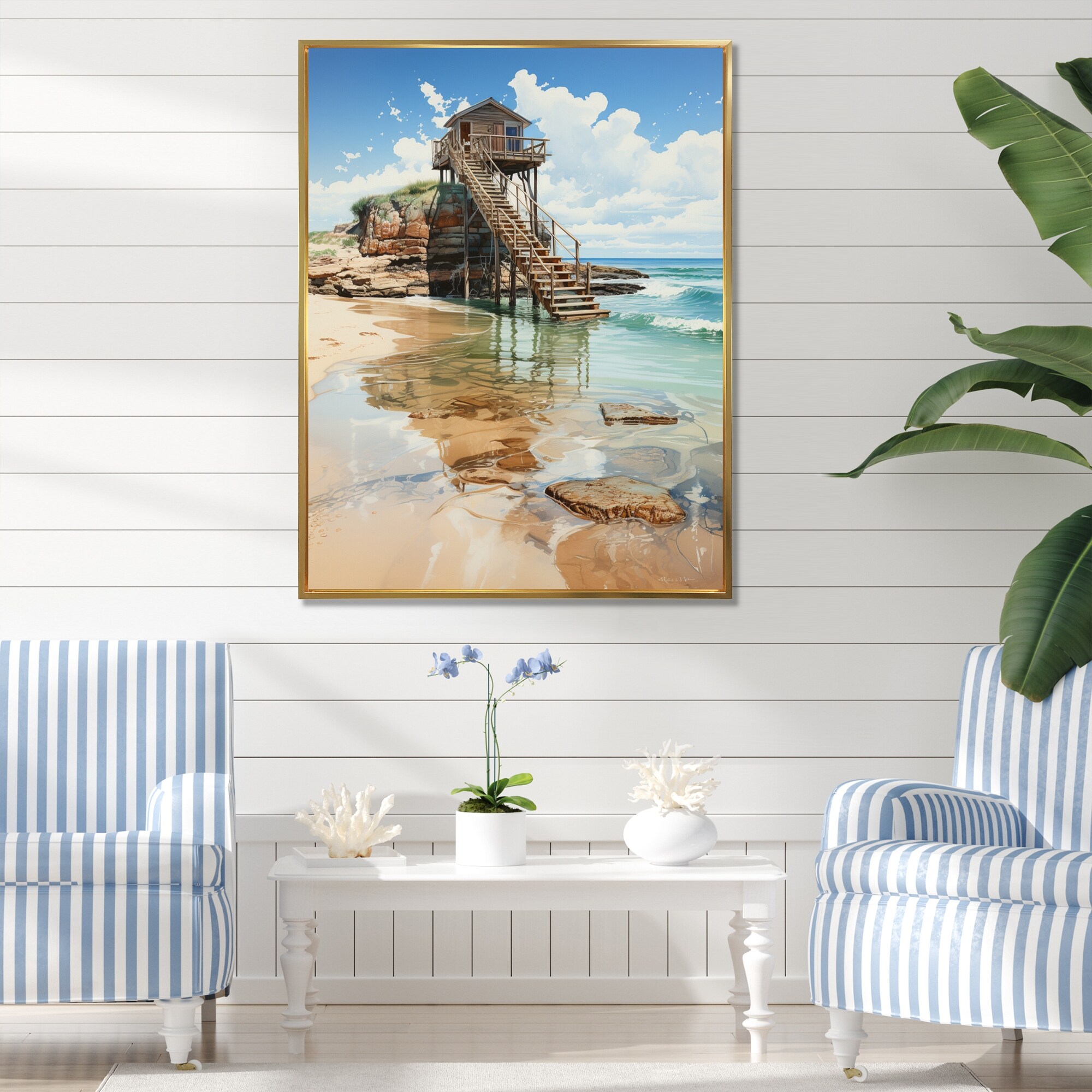 Designart "Beach Photo Seaside Reflections VII" Beach Framed Canvas Prints