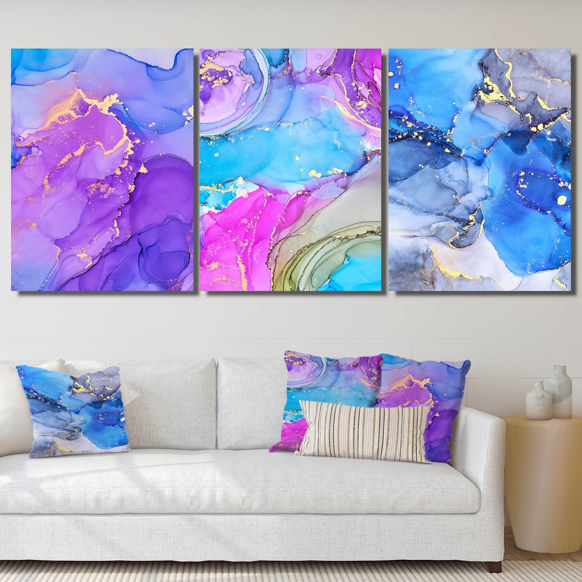 Designart 'Purple And Blue Luxury Abstract Fluid Art VII' Modern Art Set of 3 Pieces