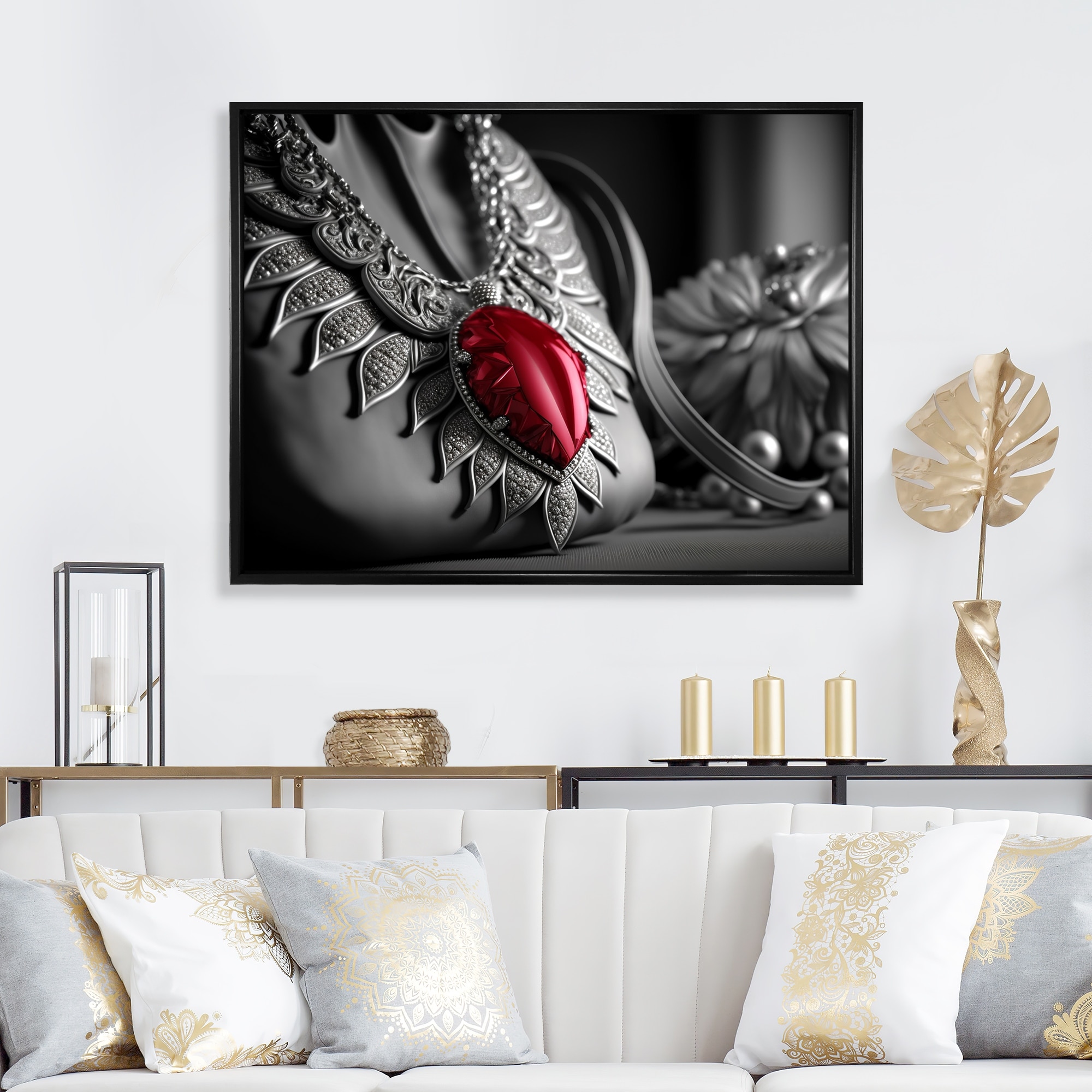 Designart "Vintage Glam Accessories in Red and Black VII" Fashion Framed Canvas Wall Art Print