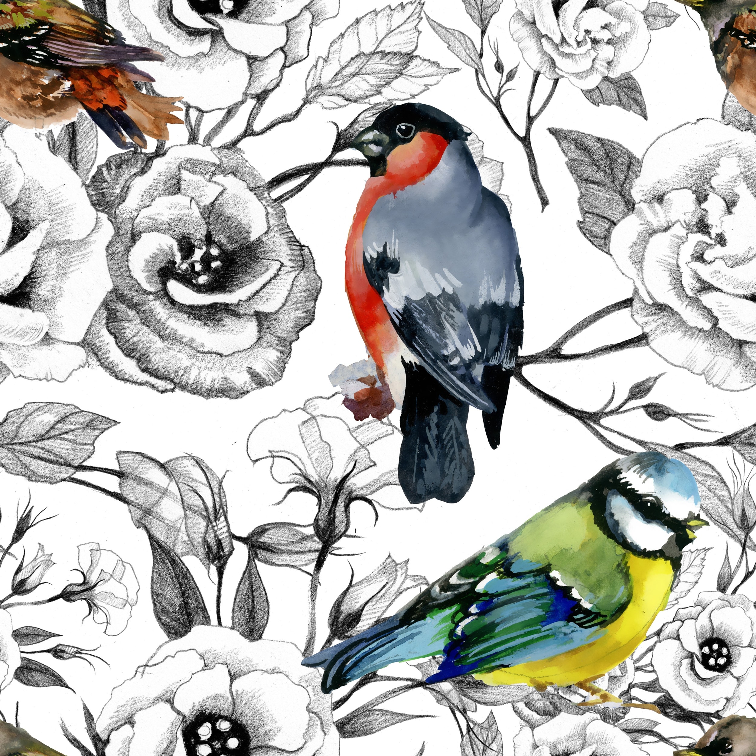 Floral Hummingbirds Vinyl-coated Removable Wallpaper - 24'' inch x 10'ft