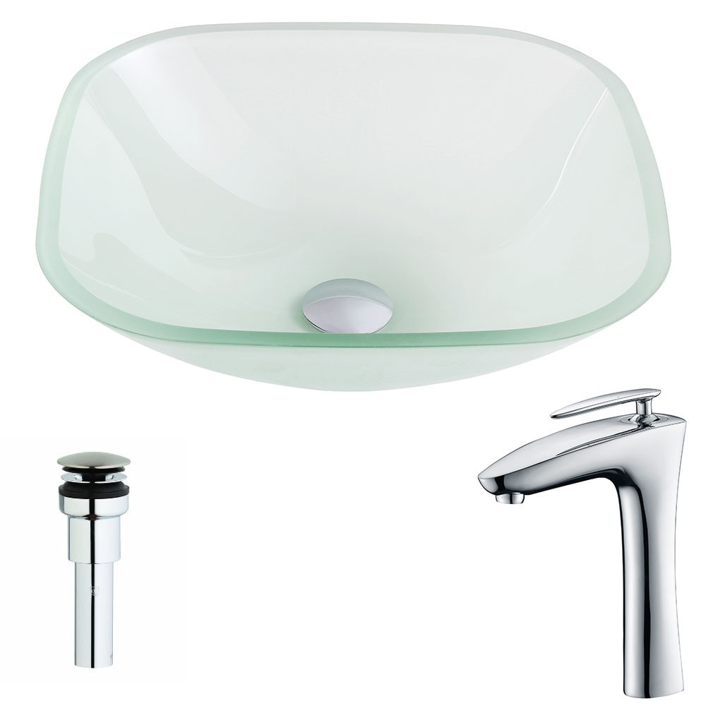 Anzzi Vista Series Deco-glass Vessel Sink in Lustrous Frosted with Fann Faucet in Polished Chrome