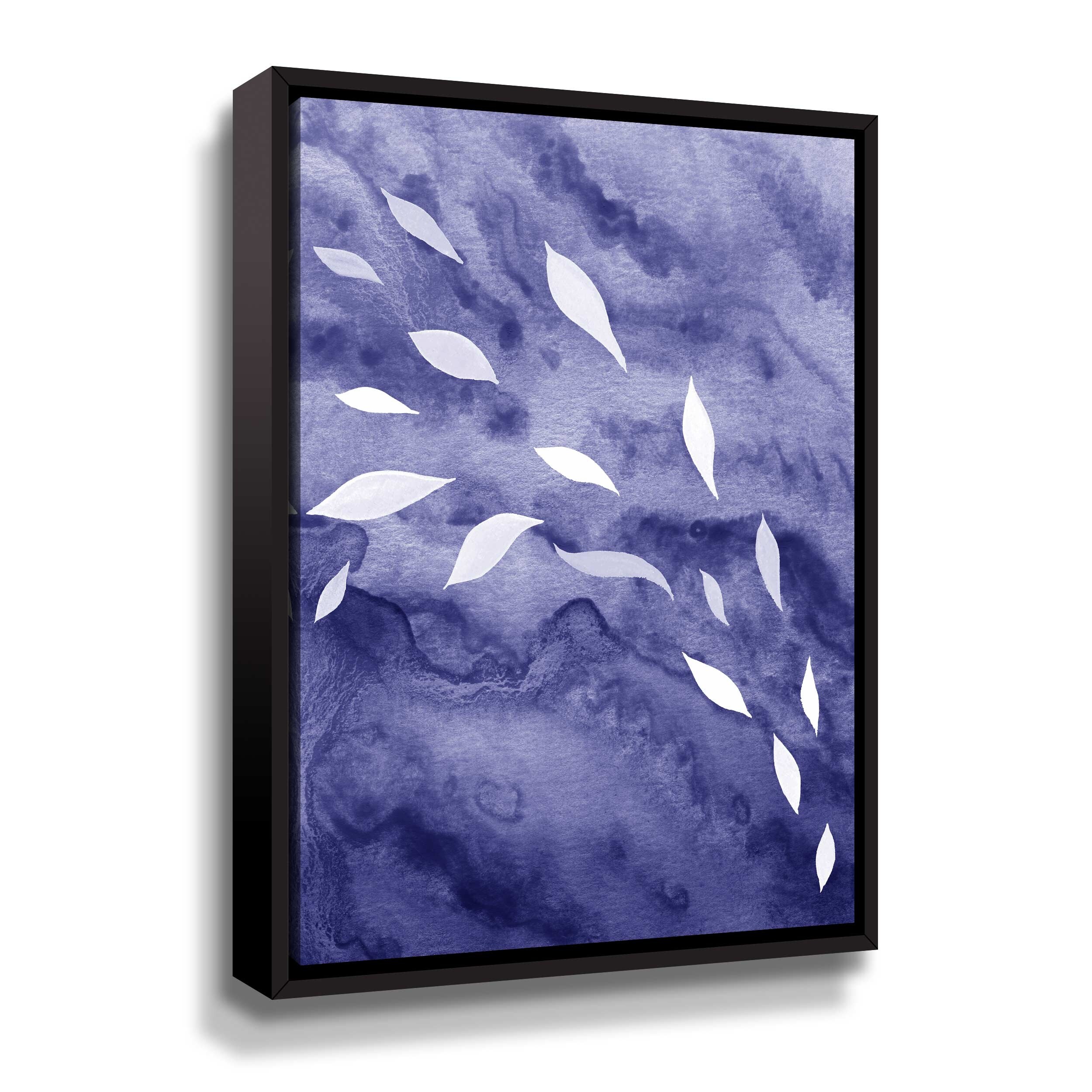 Leaves Vortex Splash Purple Blue Watercolor Very Peri Design II Gallery Wrapped Floater-framed Canvas by Irina Sztukowski