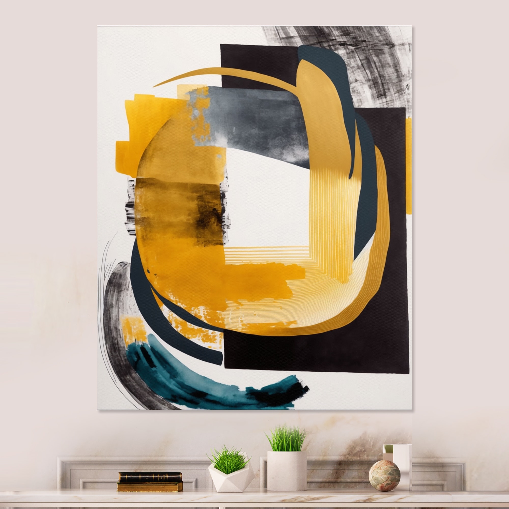 Designart "Blue And Yellow Elegance in Expanse I" City Art Deco Framed Canvas Wall Art