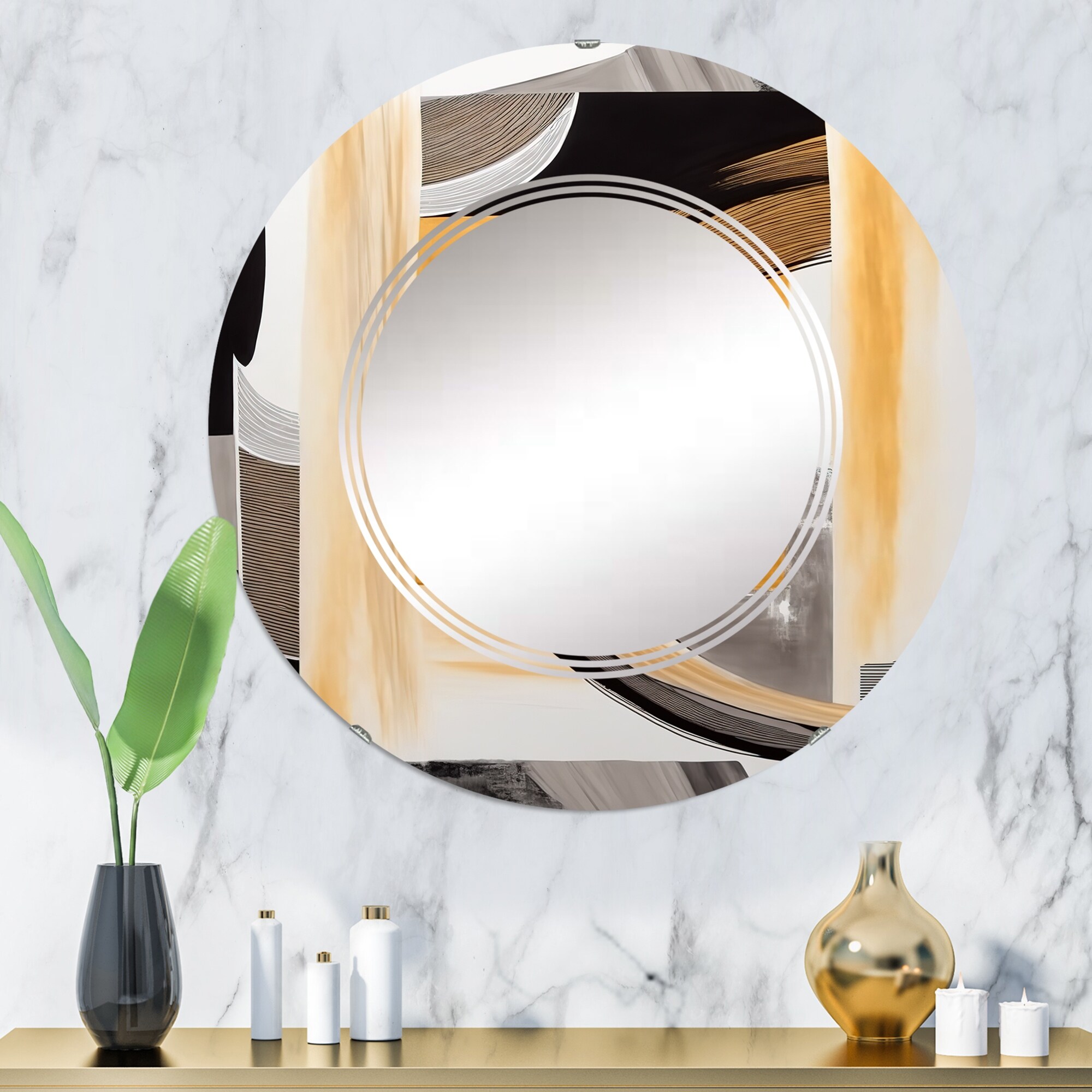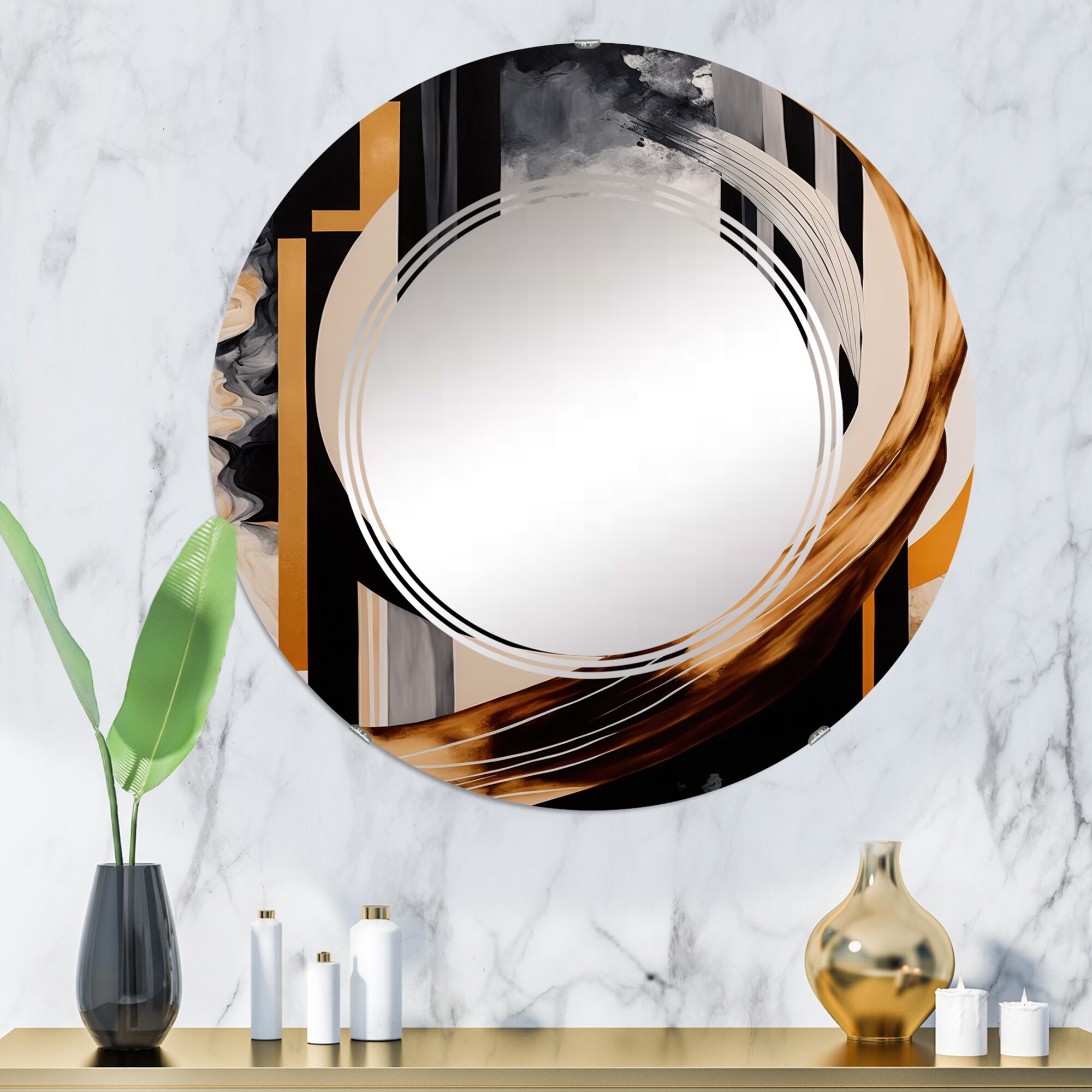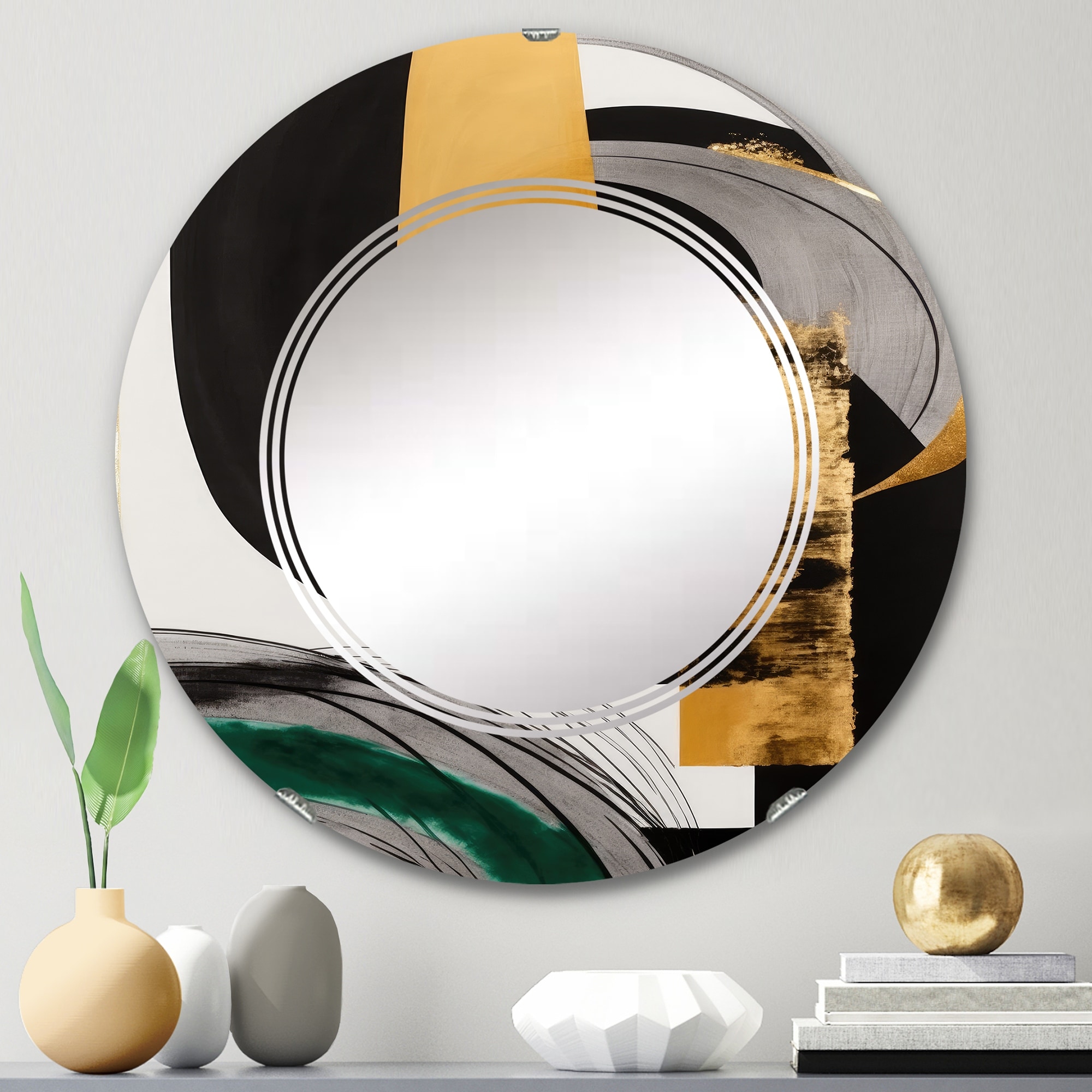 Designart 'Golden Art Deco Metallic Luxury Geometrics' Printed Modern Round or Oval Wall Mirror - Whirl