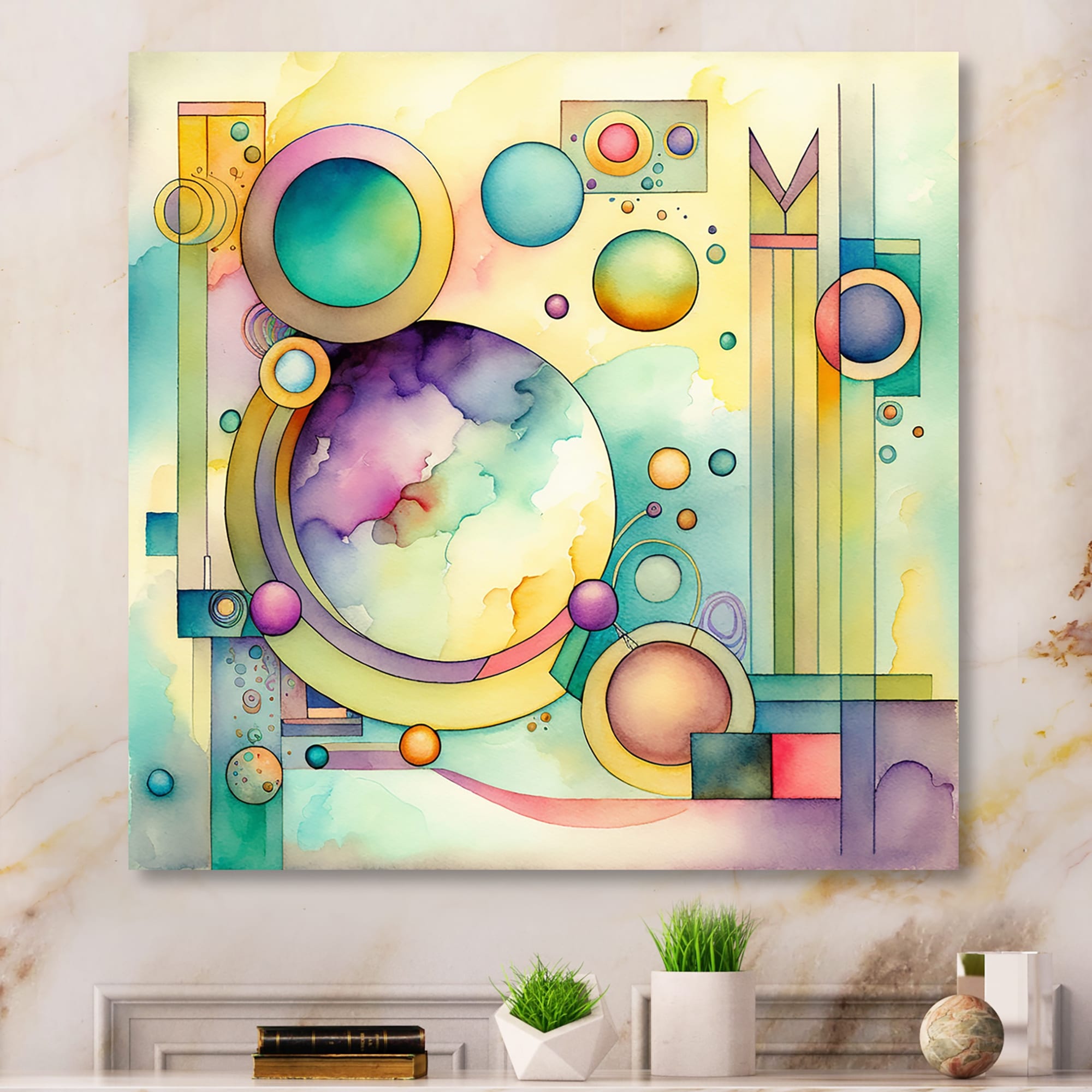 Designart 'Pastel Watercolor Art Deco I' Modern Canvas Wall Art