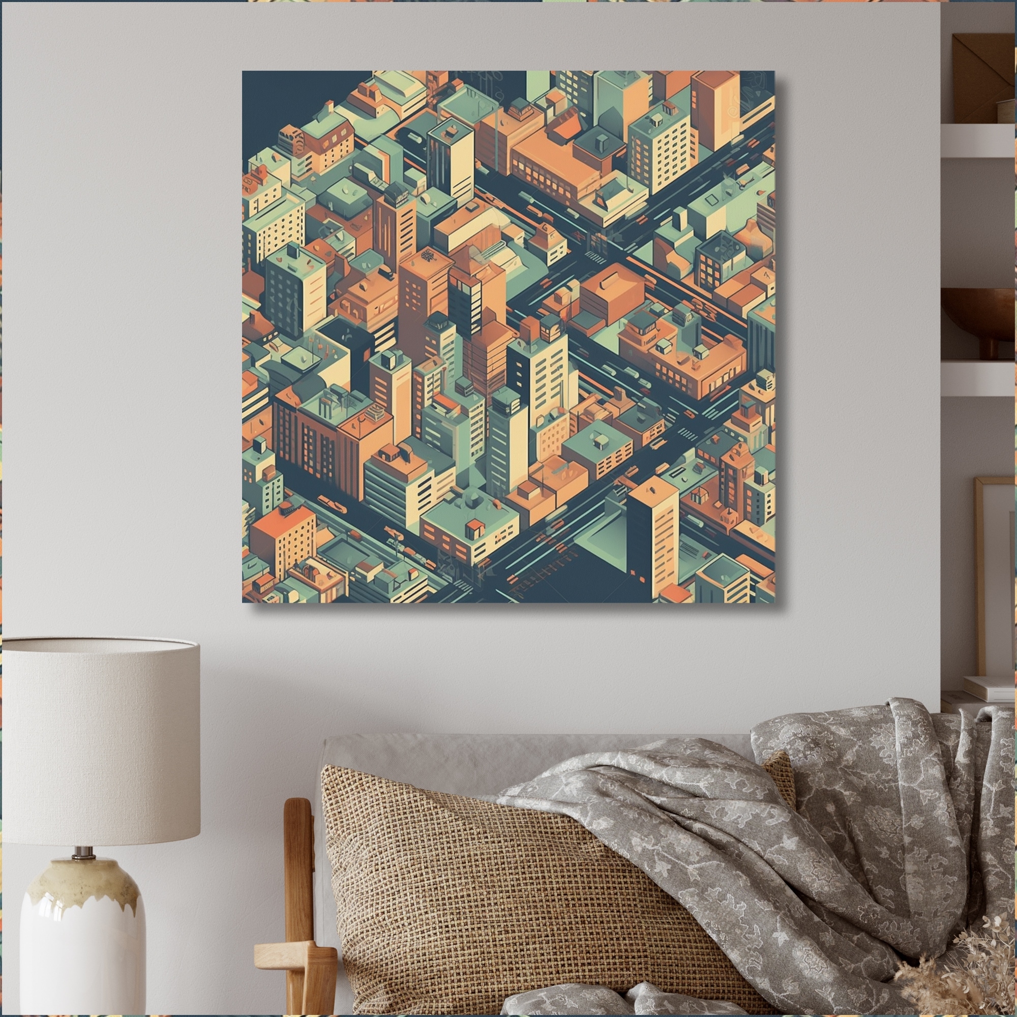 Designart "Orange And Green Cityscape Unveiled" City Art Deco Wall Art Prints