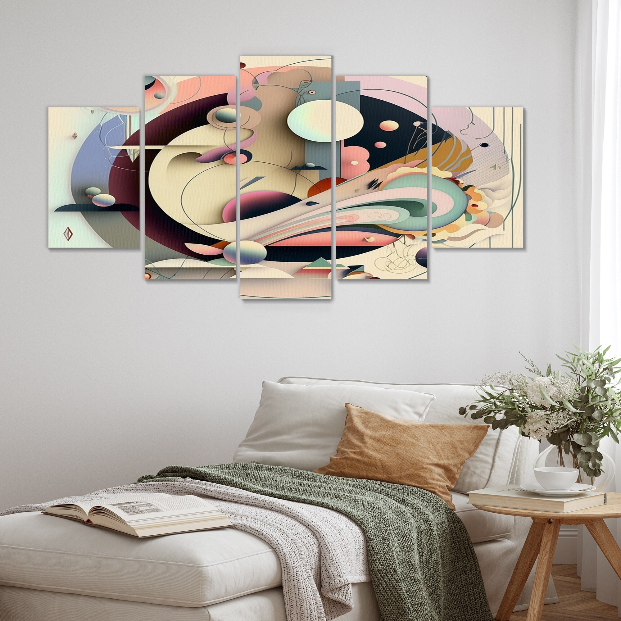 Designart "Pastel Art Deco I" Modern Geometric Multipanel Canvas Wall Art