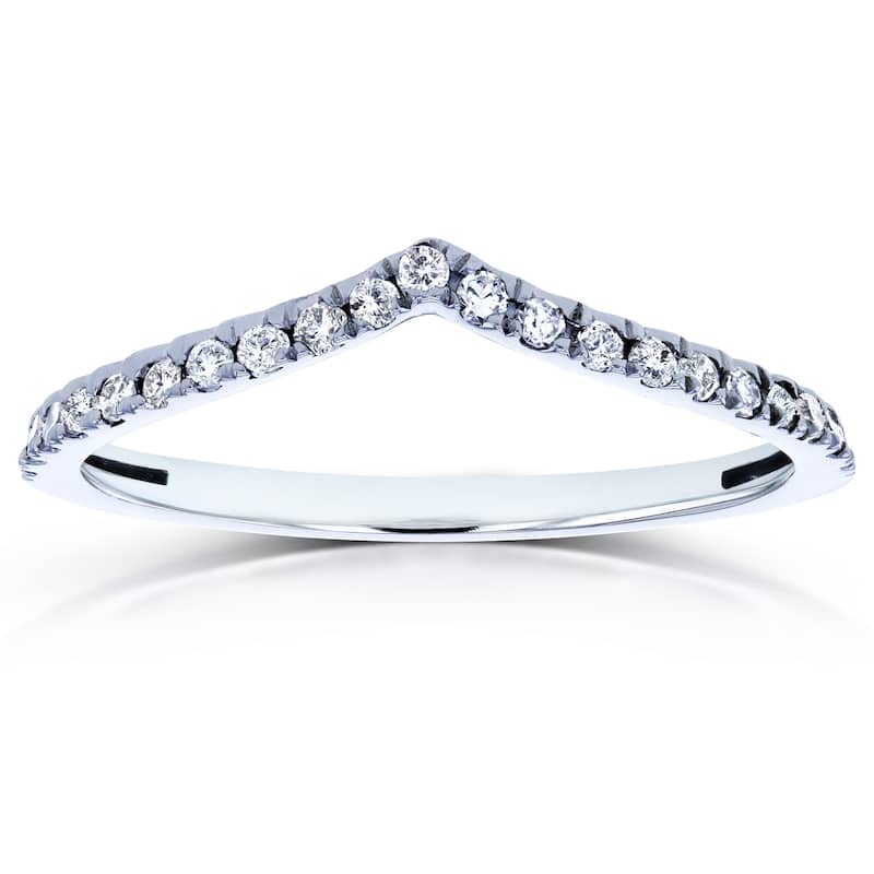 Annello by Kobelli 14k White Gold 1/6ct TDW Diamond Chevron V-shaped Wedding Band