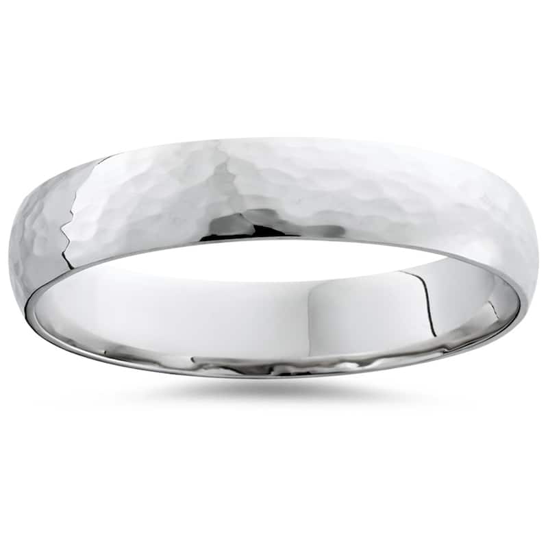Pompeii3 10k White Gold Mens Hammered High Polished 5mm Ring Wedding Band
