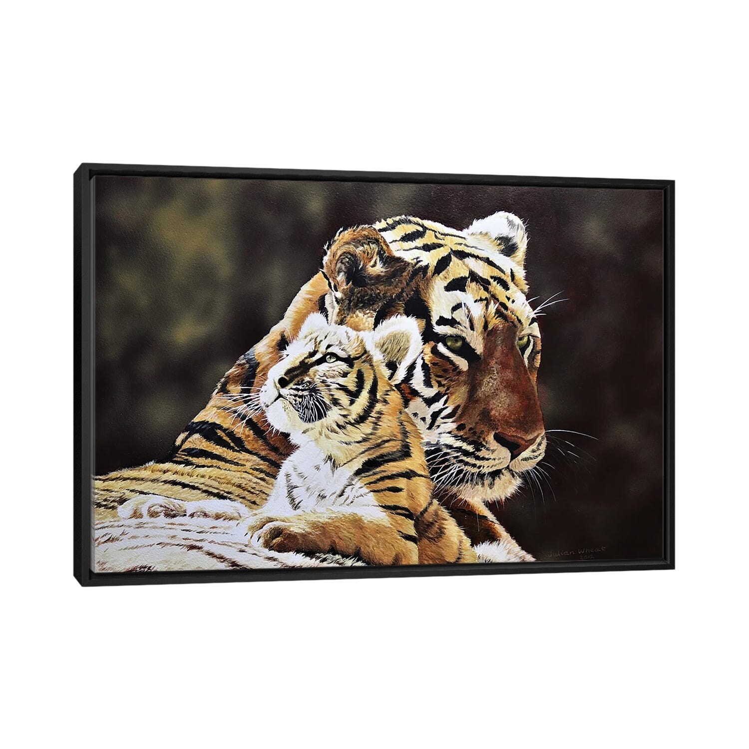 iCanvas "Tiger And Cub" by Julian Wheat Framed|Black - 18x26