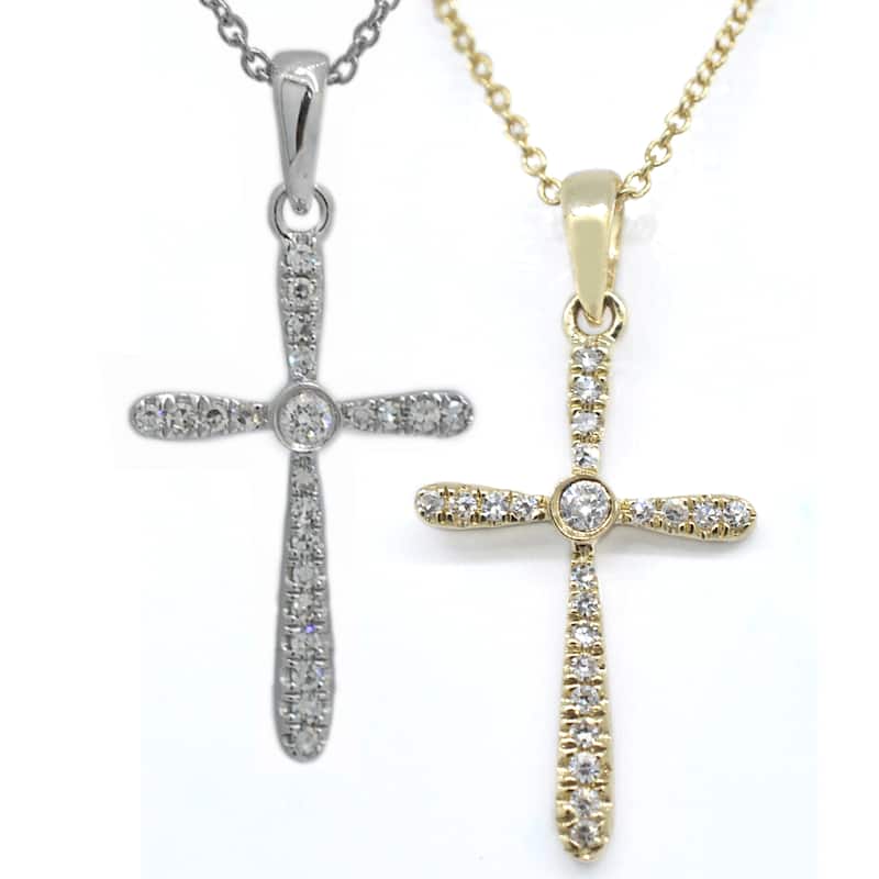 Kabella 14 kt Gold Round Diamonds Cross Pendant - White