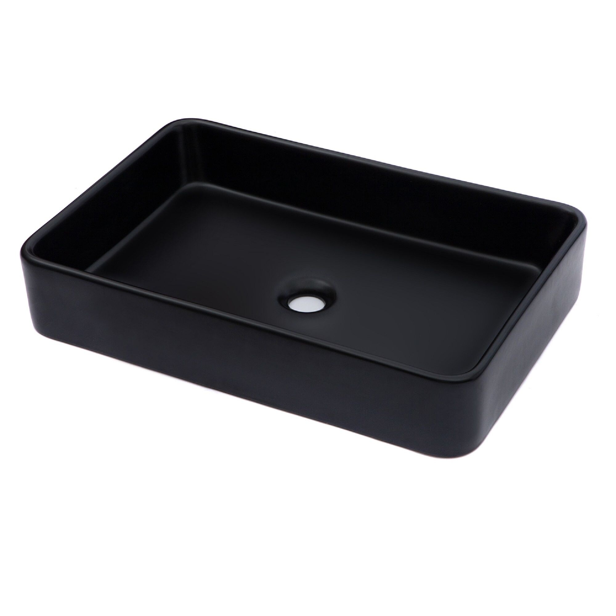 Kichae Countertop Bathroom Sink White/Black/Marble Black Ceramic Vessel Sink