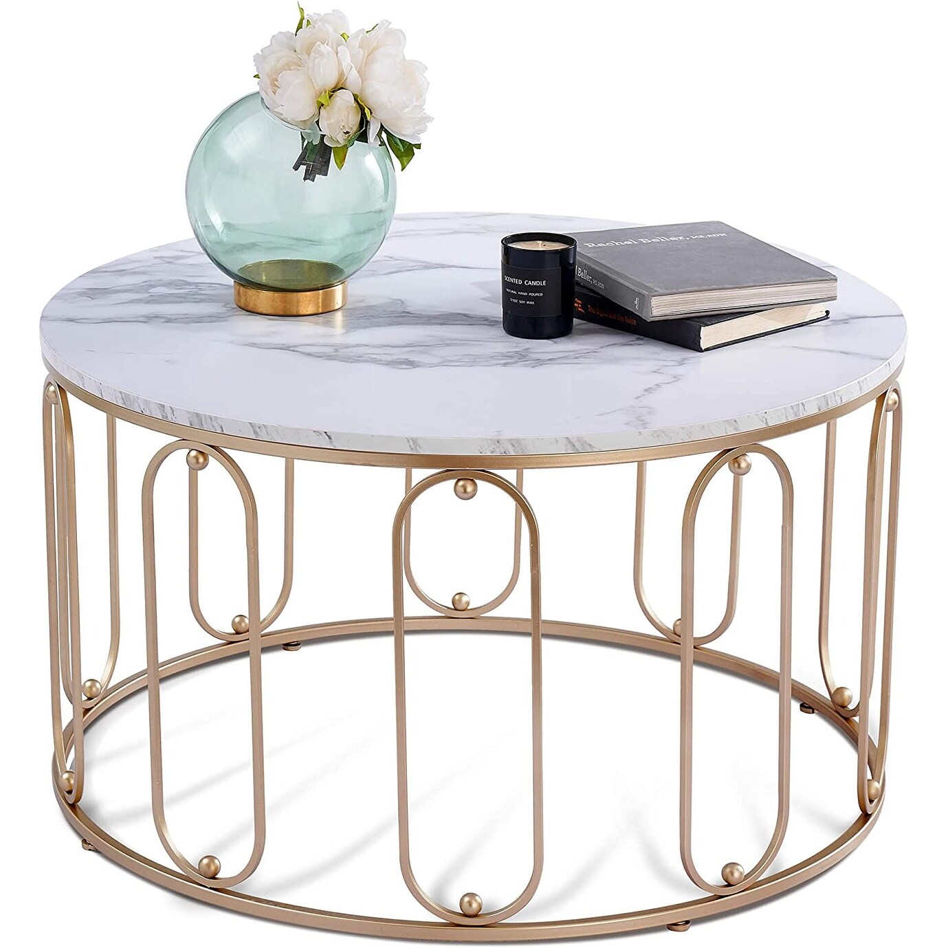 Ivinta Modern Round Coffee Table for Living Room, White Tables with Marble Finish