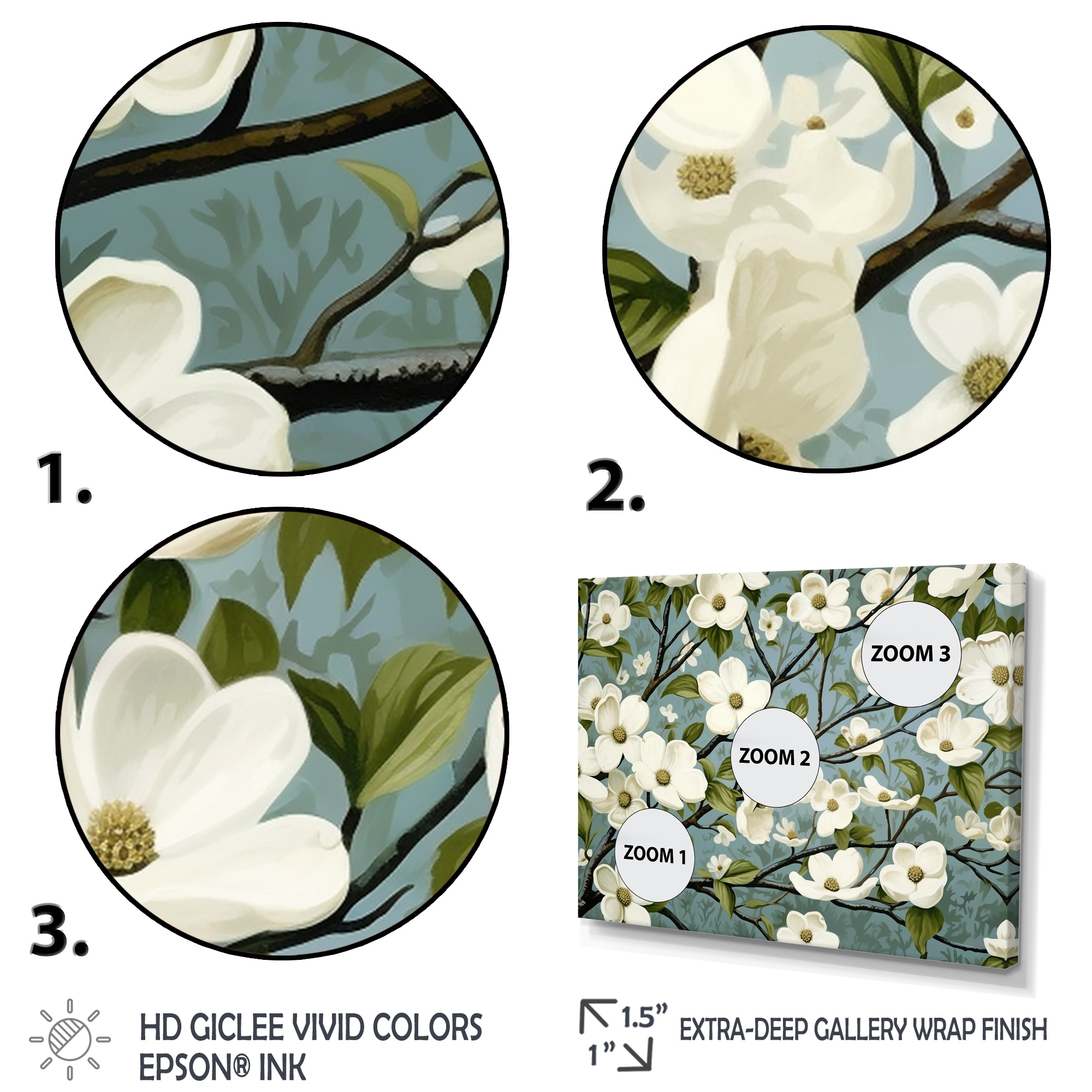 Designart "White Teal Dogwood Elegance" Dogwood Framed Wall Decor
