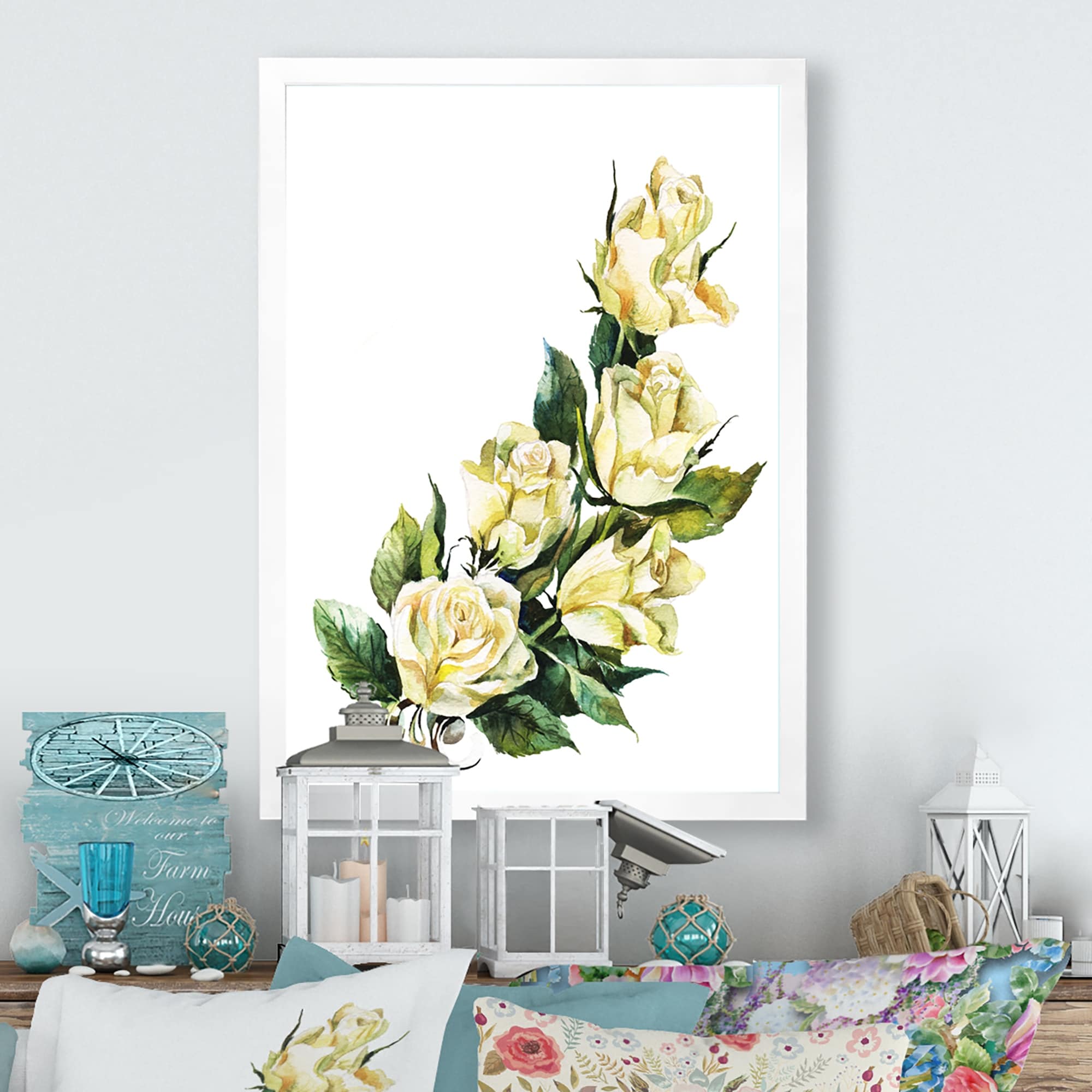 Designart "White Blossoming Roses" Traditional Framed artwork