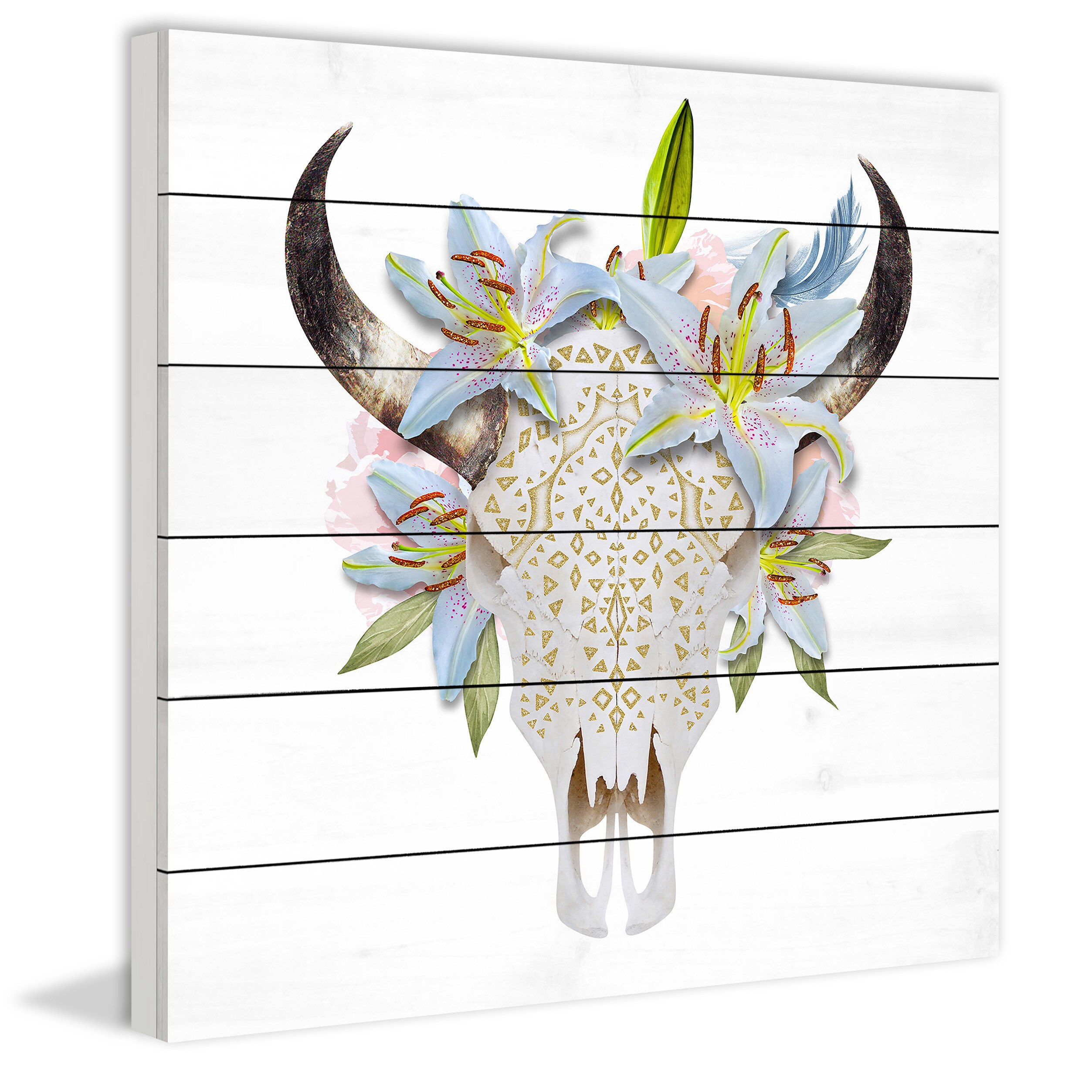 Marmont Hill - Handmade Floral Crown Skull Painting Print on White Wood