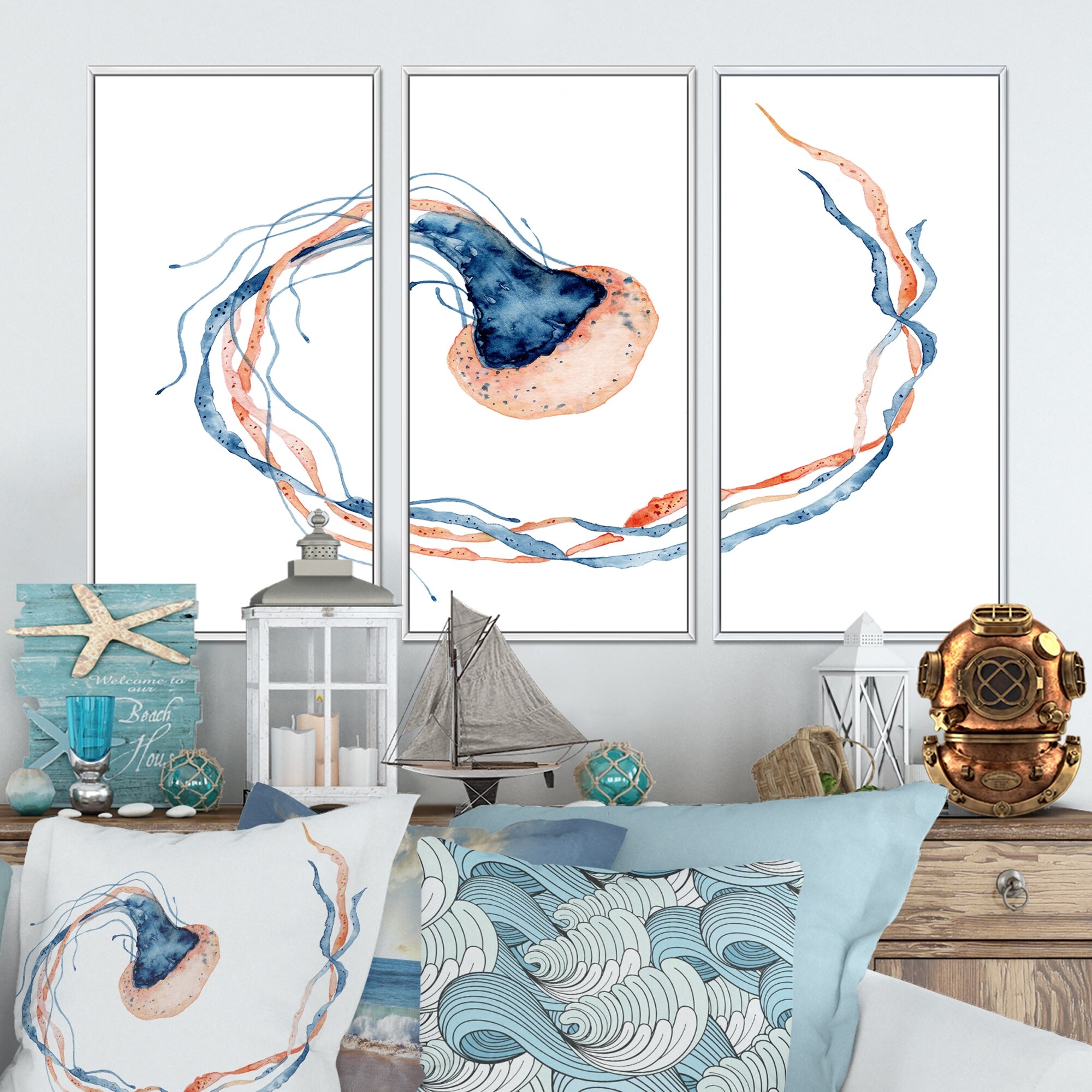 Designart "Painted Medusa on White II" Nautical & Coastal Framed Artwork Set of 3 - 4 Colors of Frames