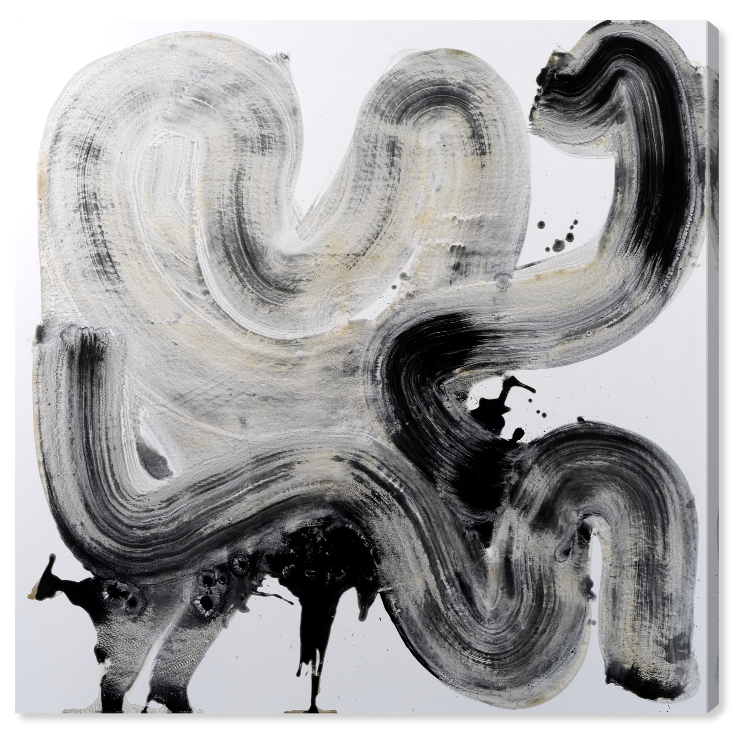 Winding Path, Swirls and Curves Modern Black Canvas Wall Art Print for Living Room