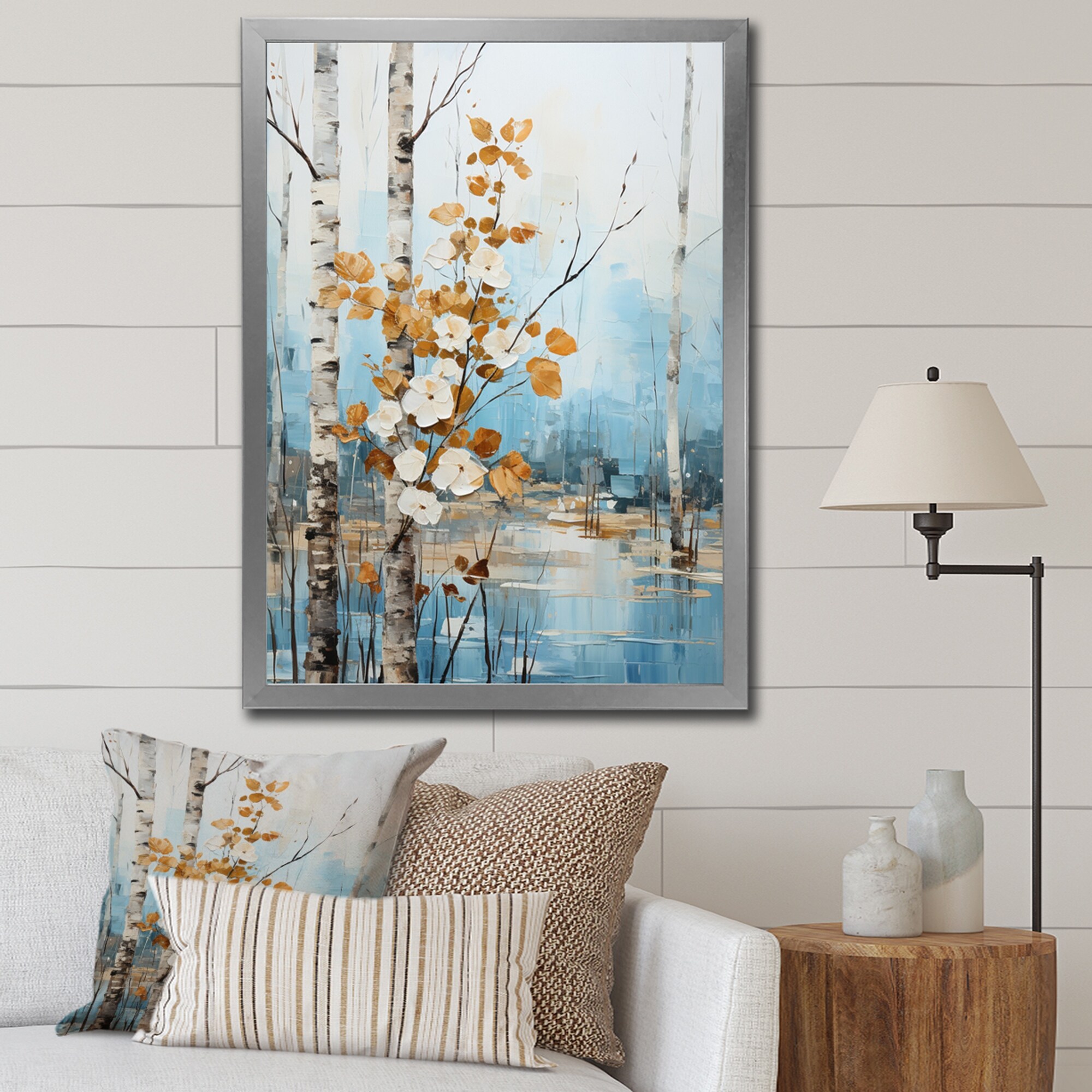 Designart "Birch Woods Whispering Winds III" Tree Birch Framed Canvas Wall Art