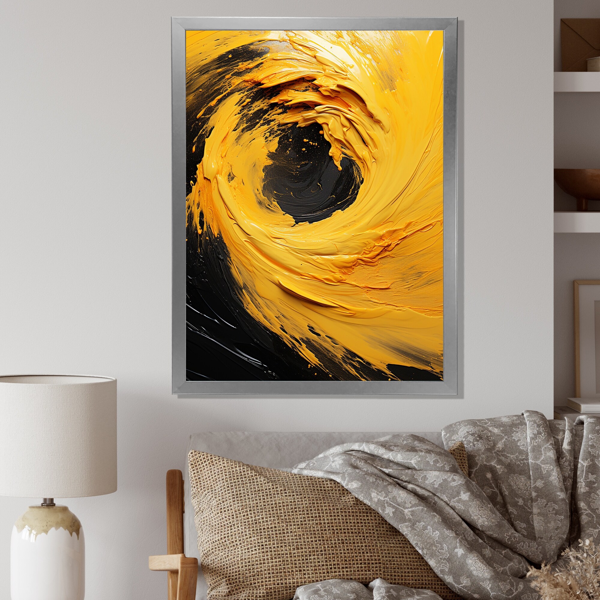 Designart "Yellow Whirling Winds II" Storms Framed Wall Art Living Room