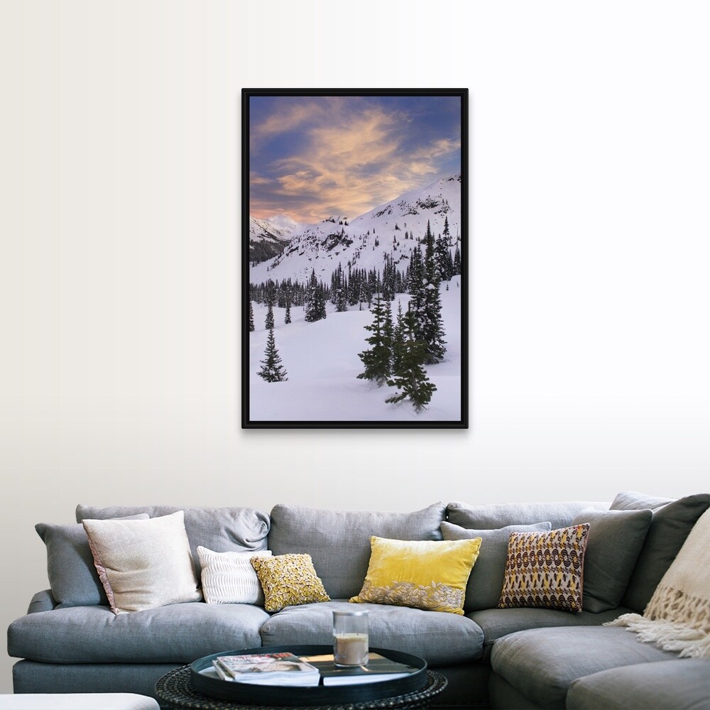 "Winter sunset, Coast Mountains, British Columbia" Black Float Frame Canvas Art
