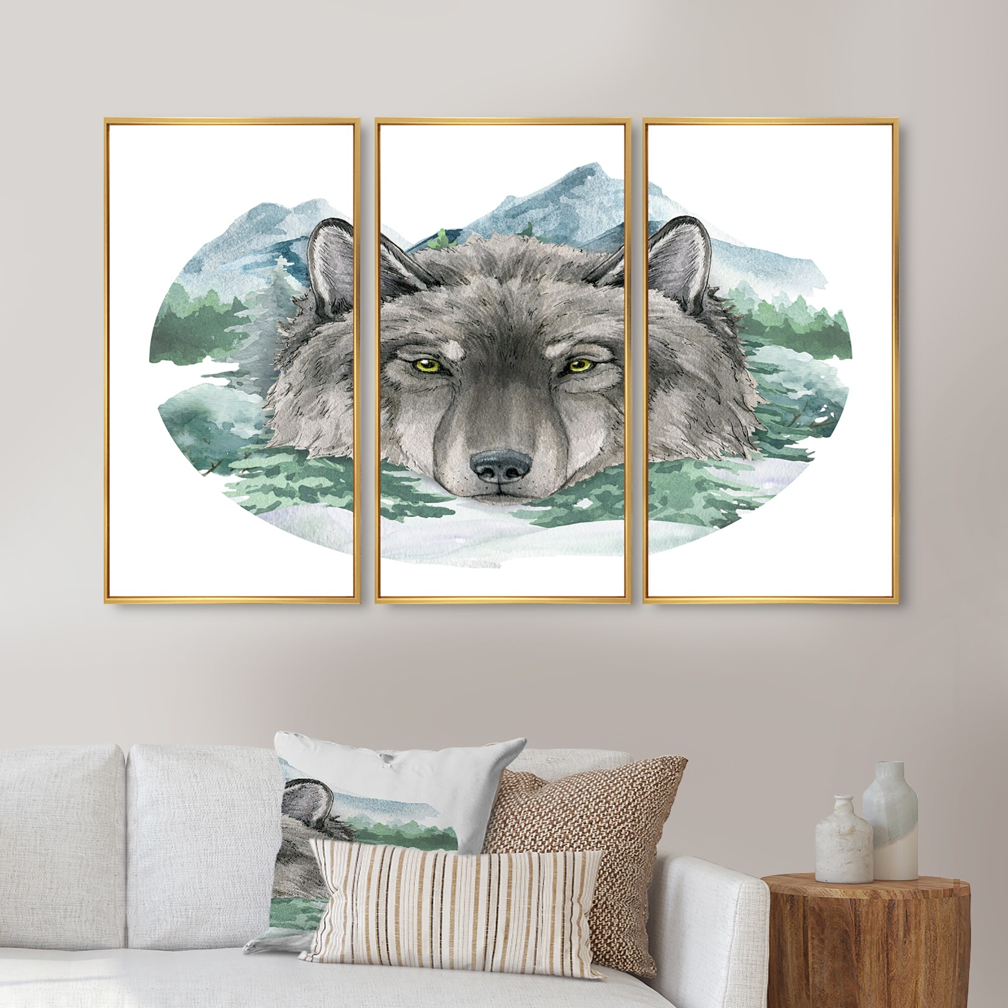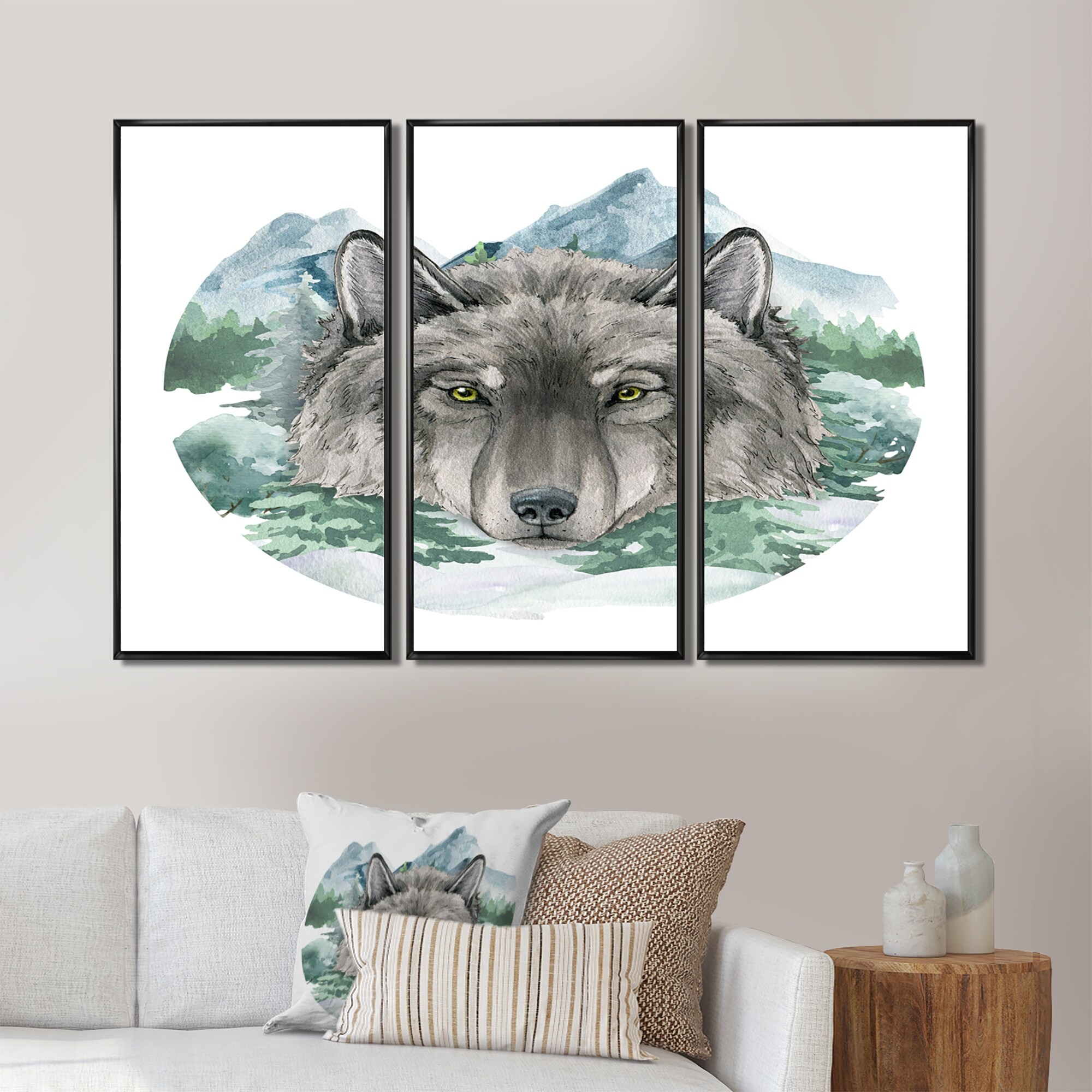 Designart "Portrait Of a Wolf II" Country Framed Wall Decor Set of 3 - 4 Colors of Frames
