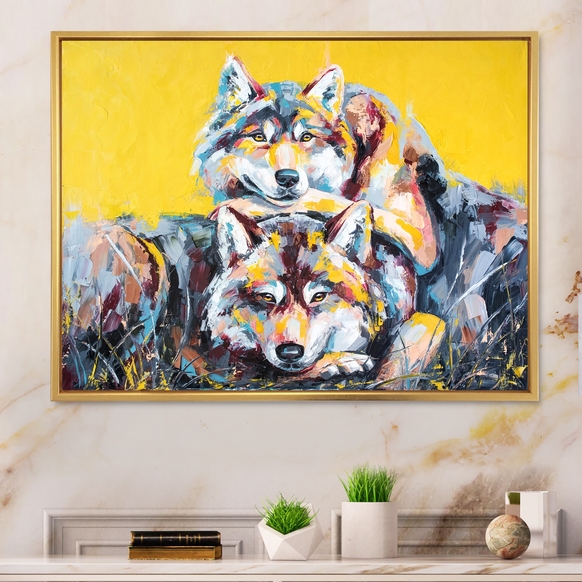 Designart "Colorful Wolf Wildlife Emotion" Modern Framed Canvas artwork