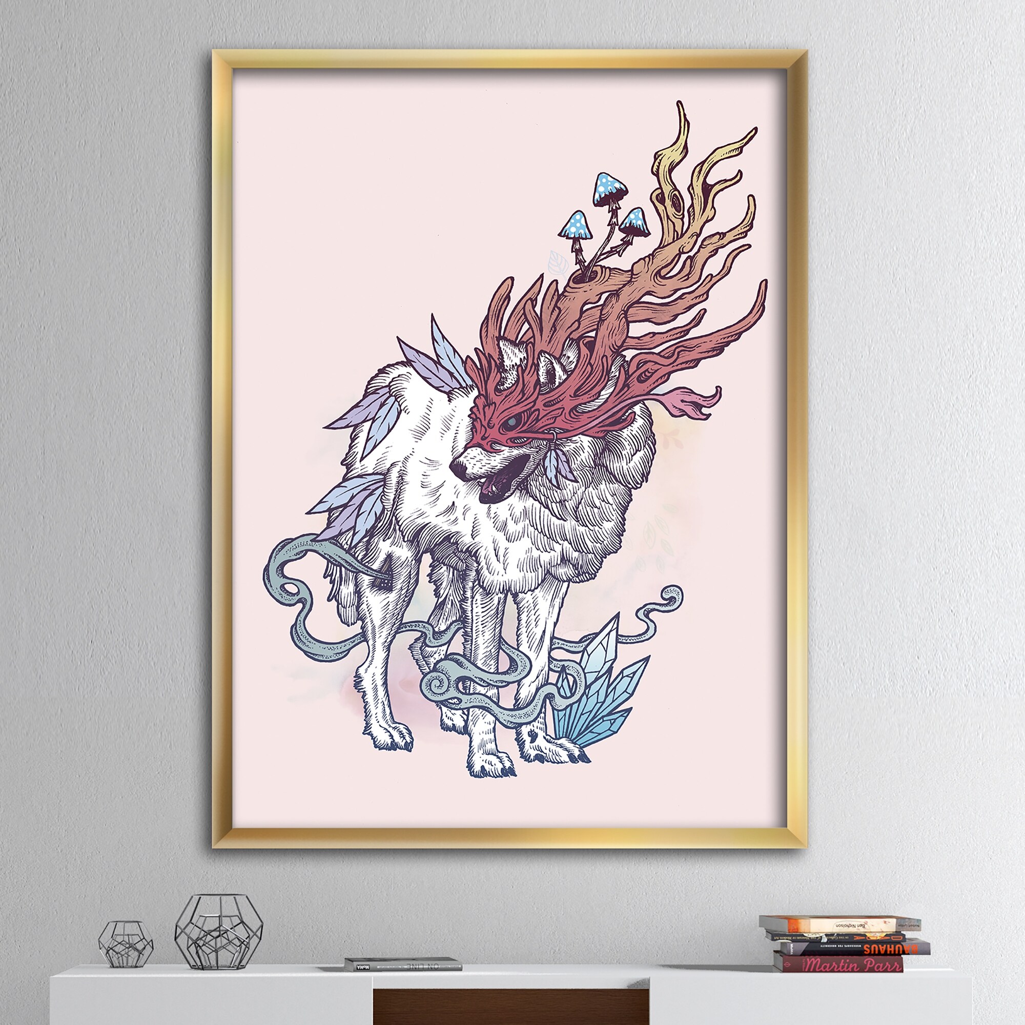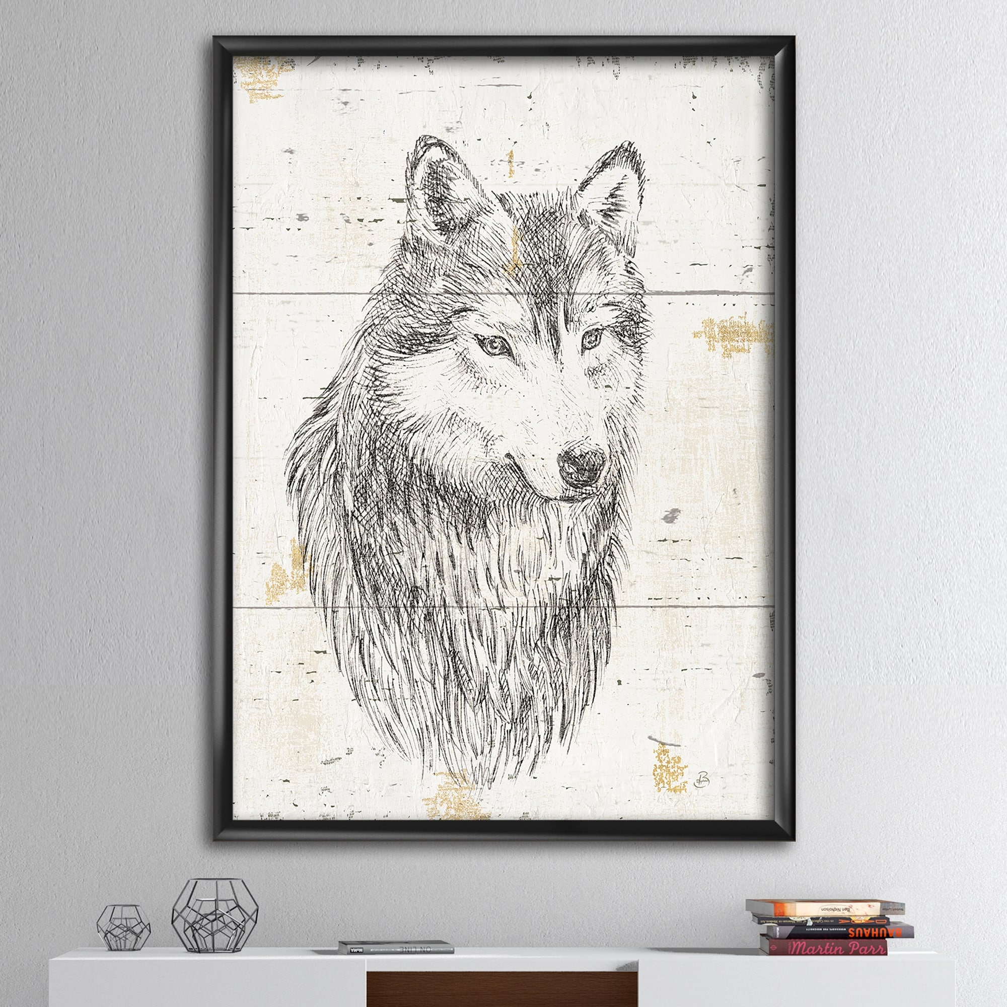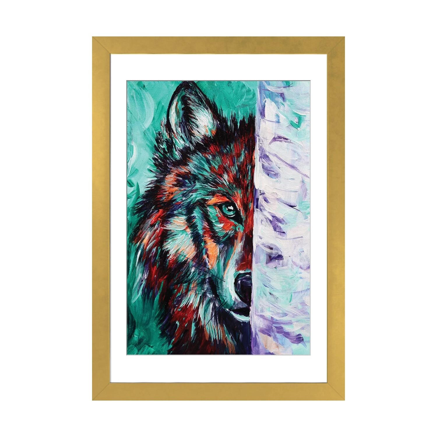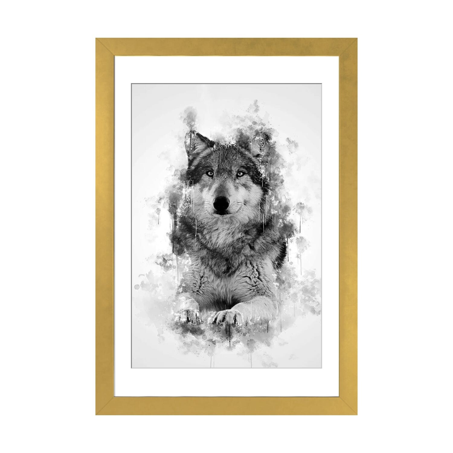 iCanvas "Wolf" by Taeko Ozaki Framed|Gold - 18x26