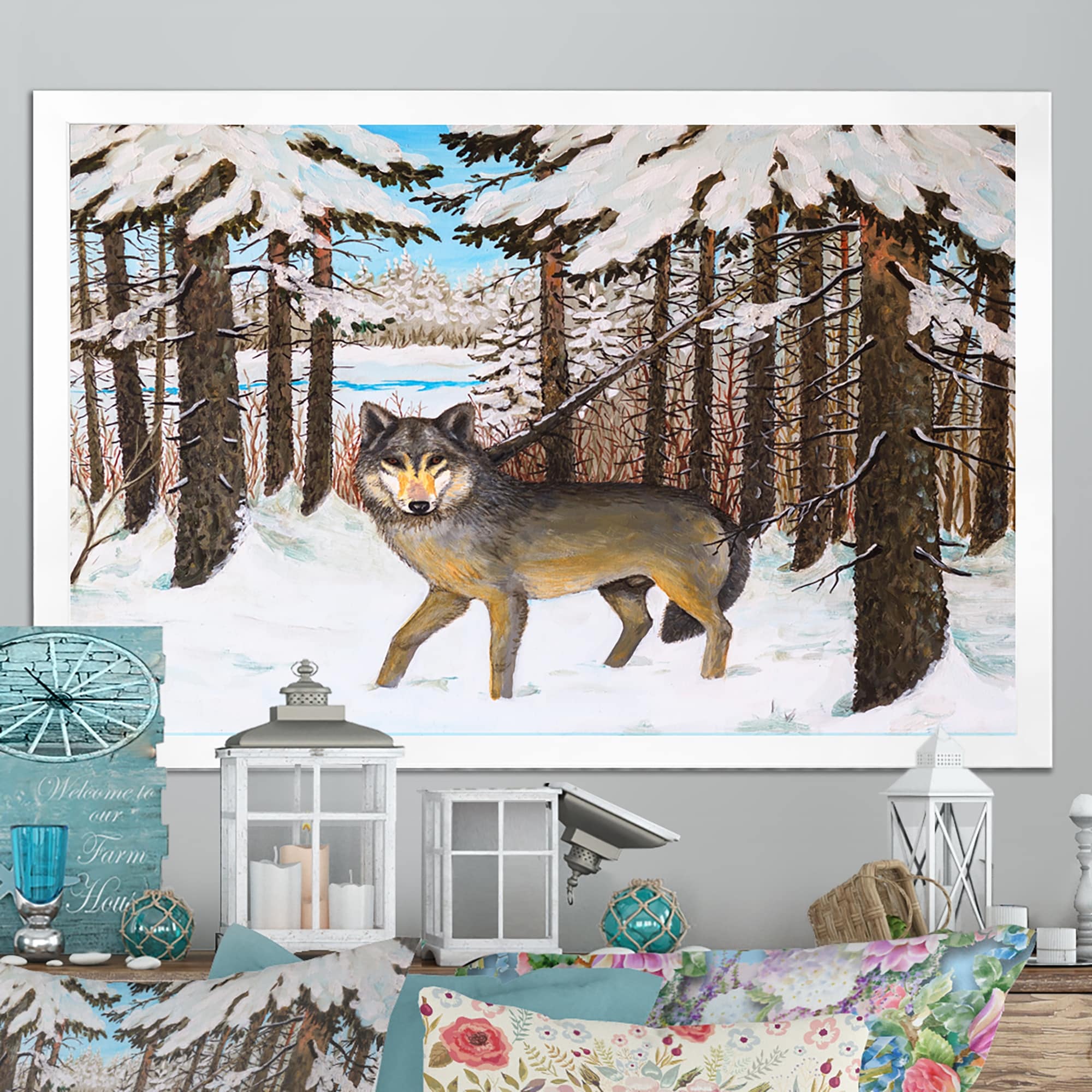 Designart "Wild Life Wolf Painting" Traditional Framed Wall Decor