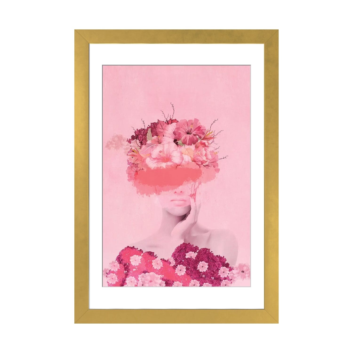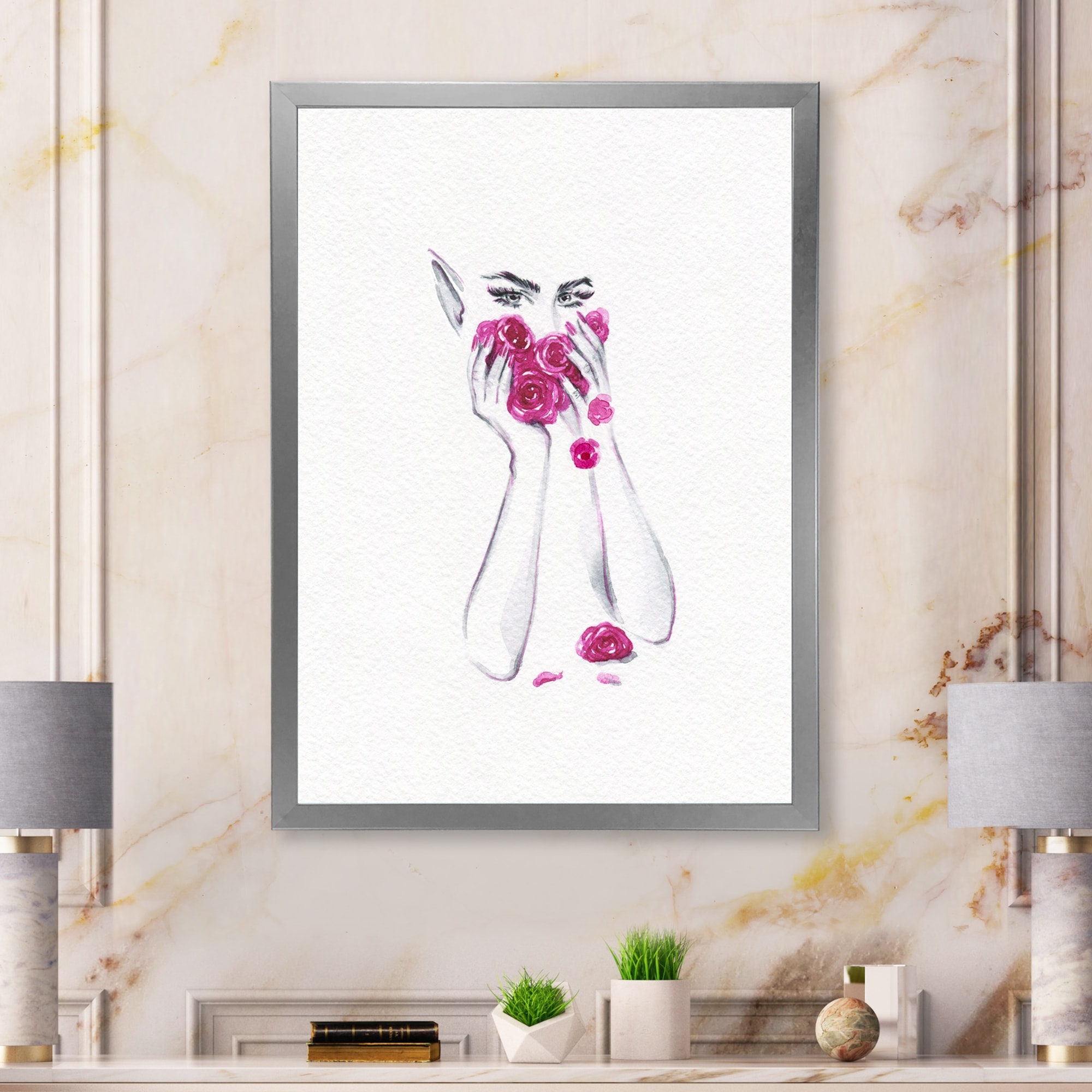 Designart "Pink Floral Glam Woman Portrait II" Glam Framed artwork