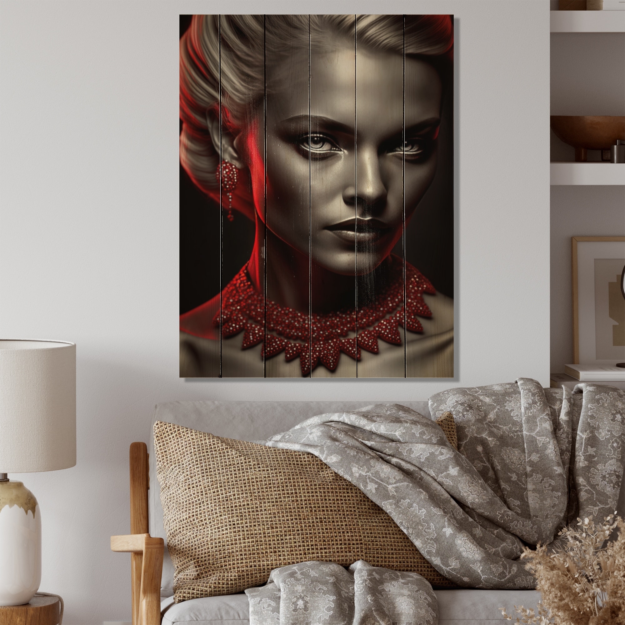 Designart "Vintage Elegance III" Woman Sensual Print on Natural Pine Wood