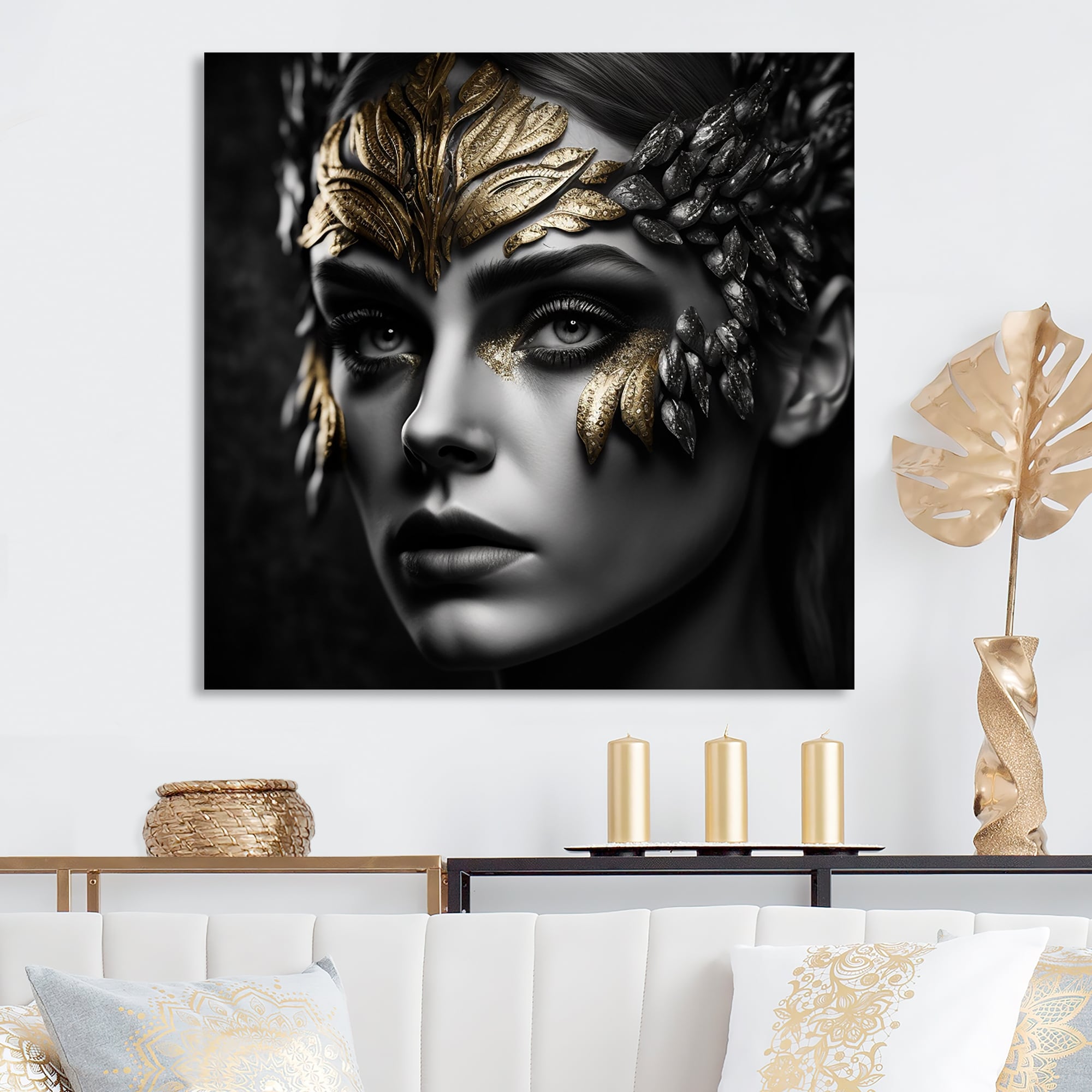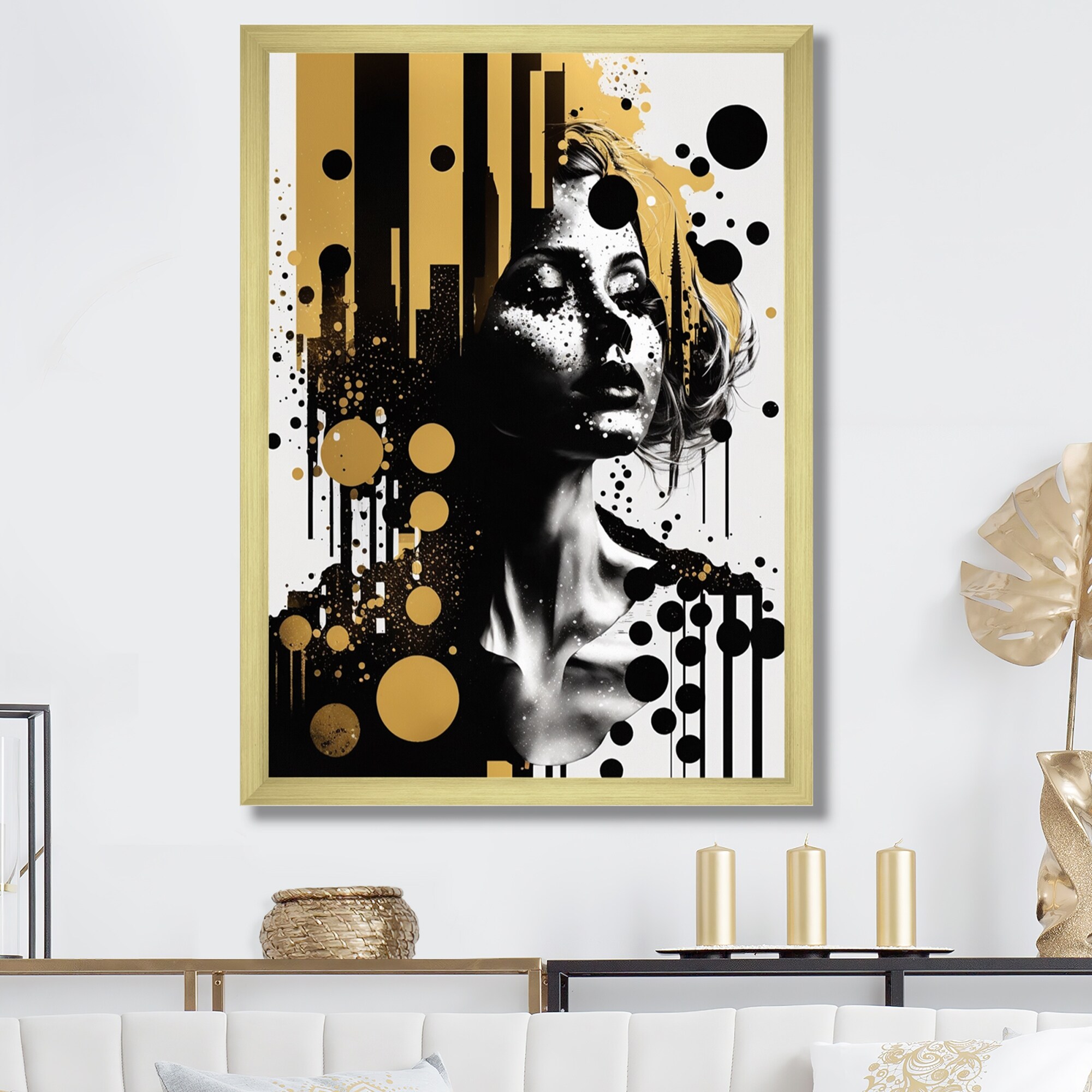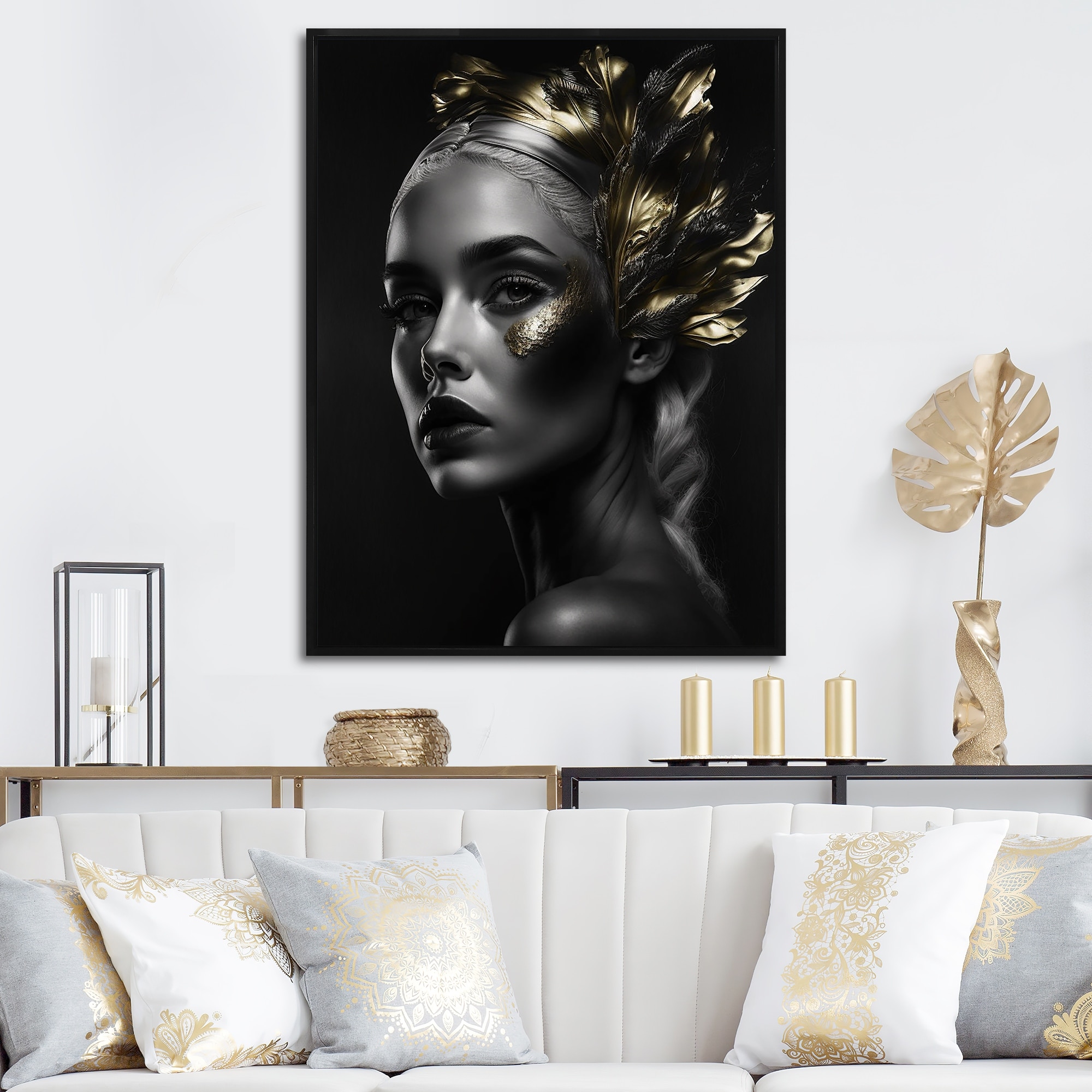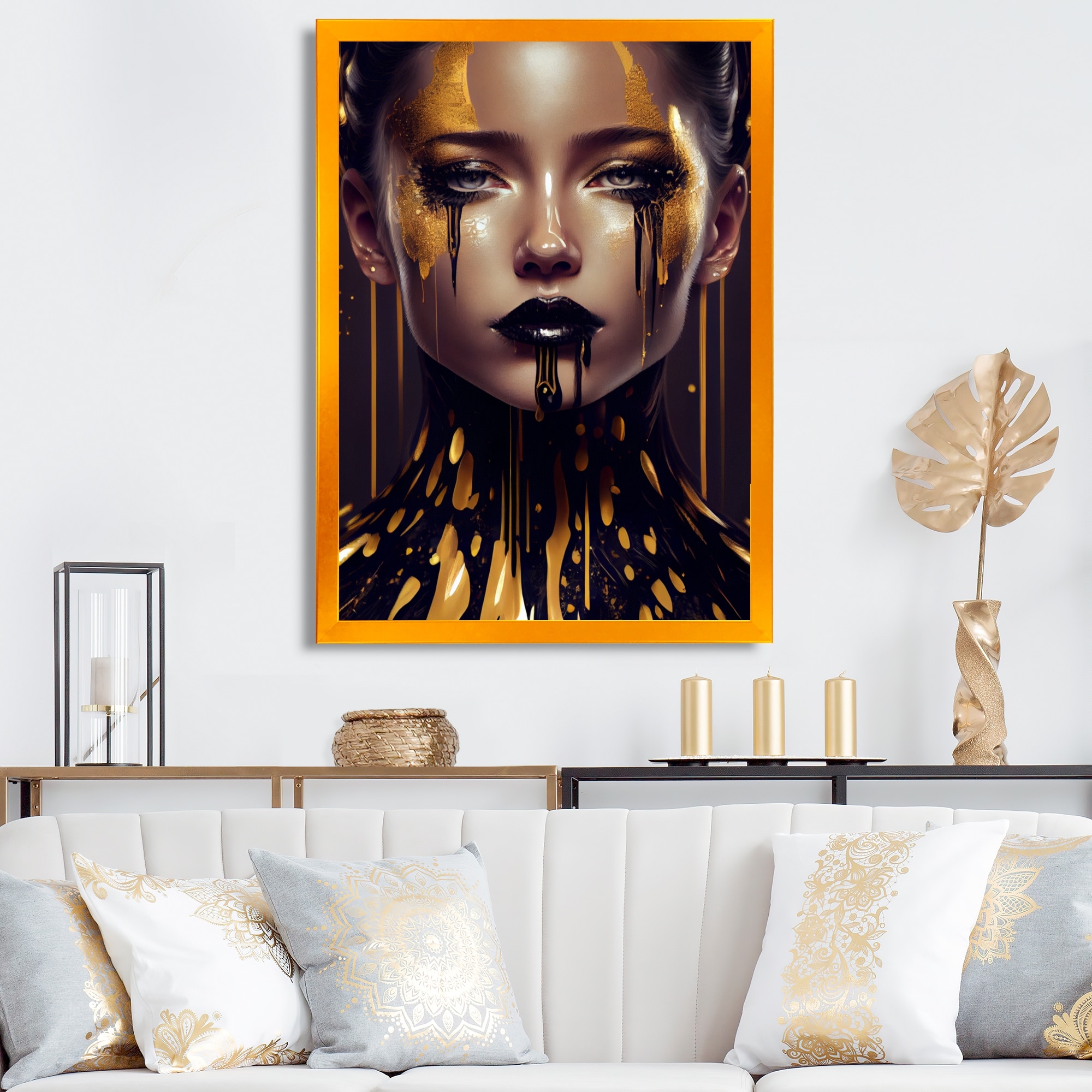 Designart "Gold Crystal Female Portrait Ii" Modern Woman Framed Wall Art for Living Room