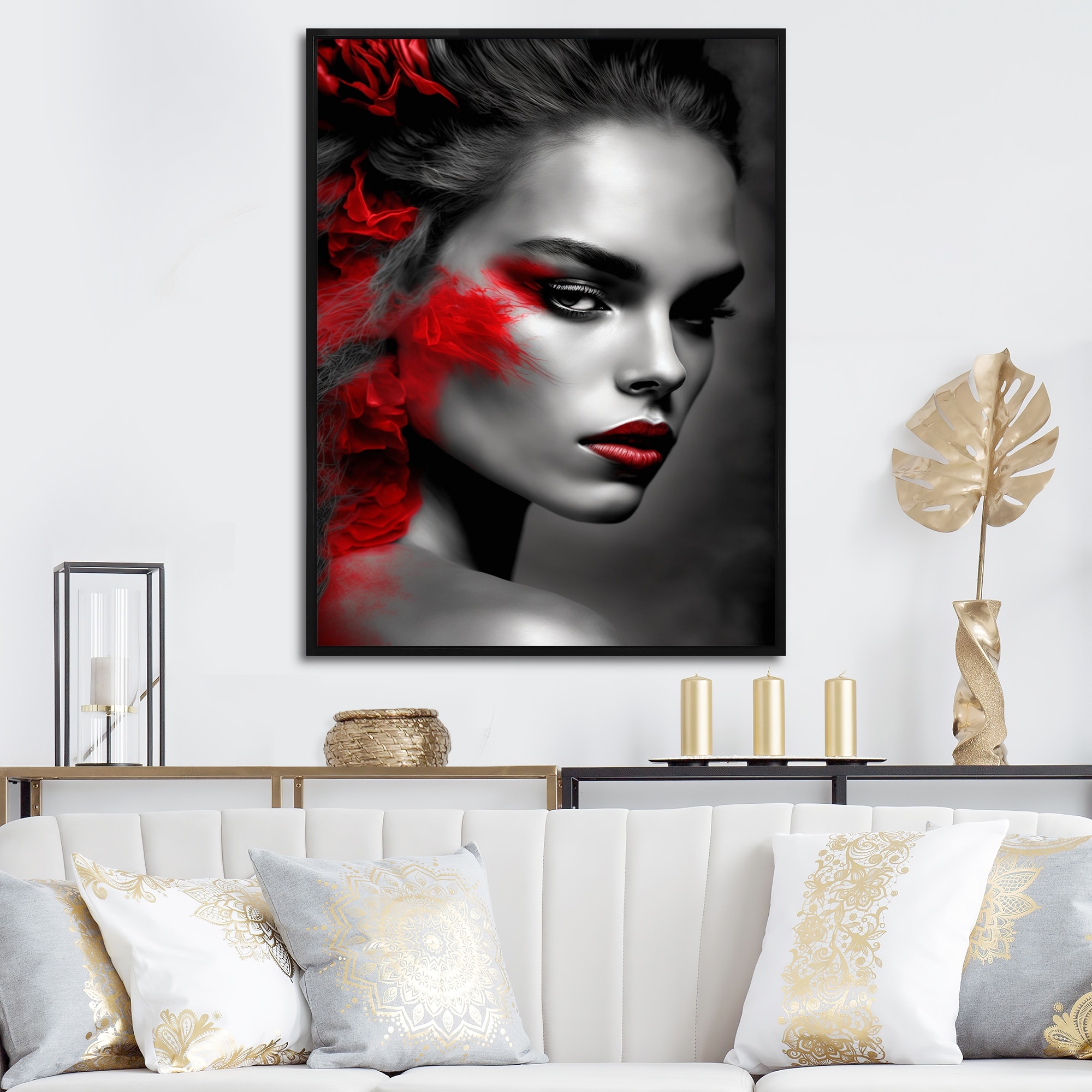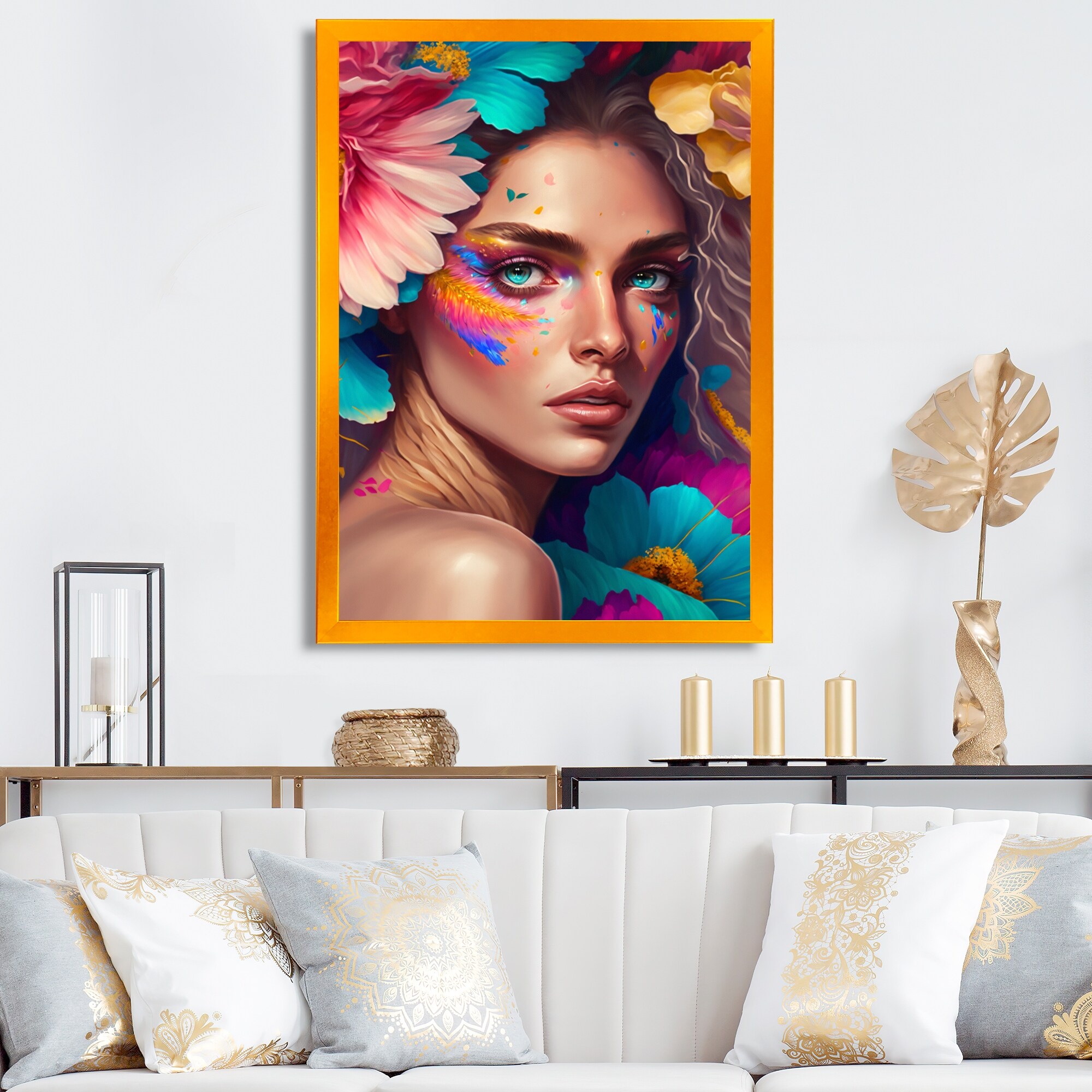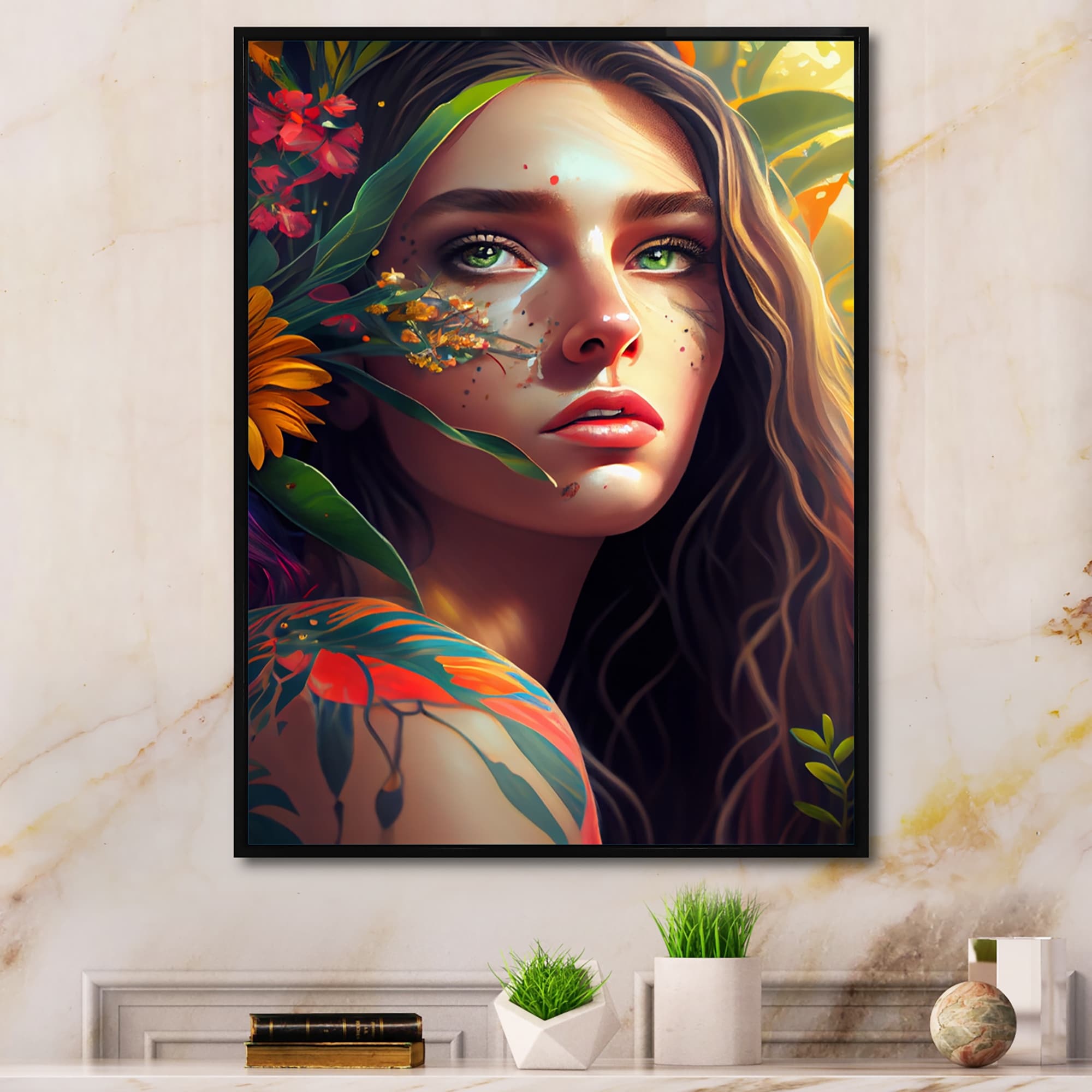 Designart "Floral Sensual Woman Portrait II" Contemporary Glam Framed Art Print