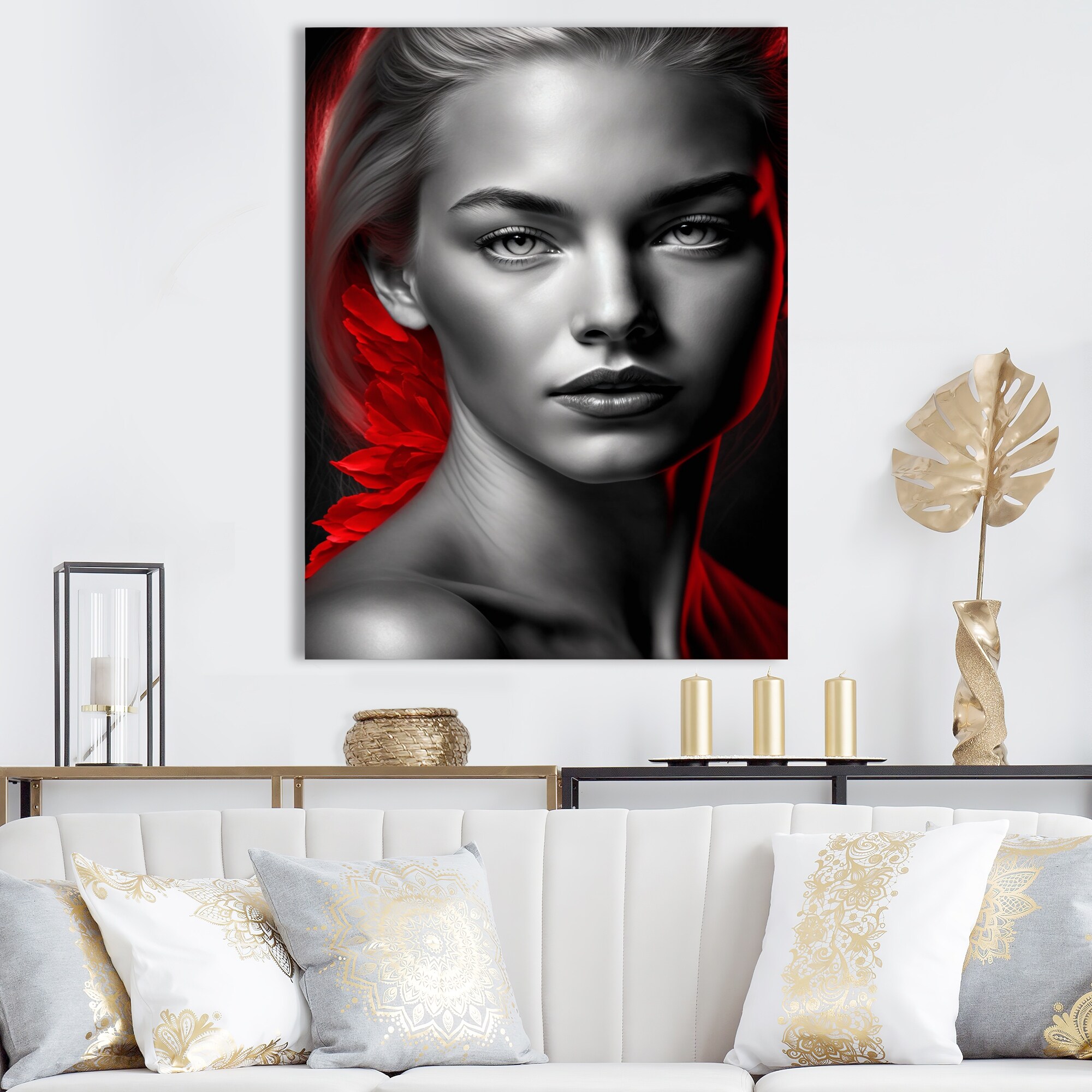 Designart "Contemporary Lady in Red And Black" Woman Sensual Canvas Wall Art