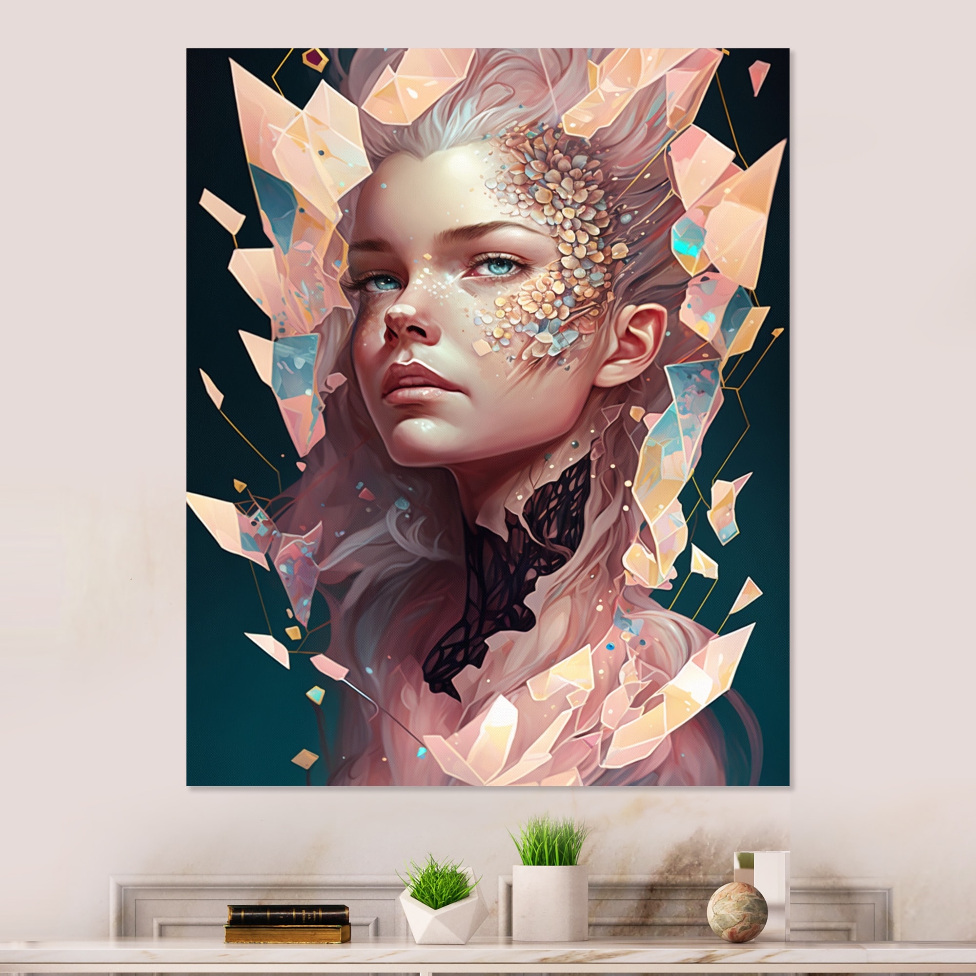 Designart "Crystal Hexagon Woman I" Modern Woman Metal Wall Art
