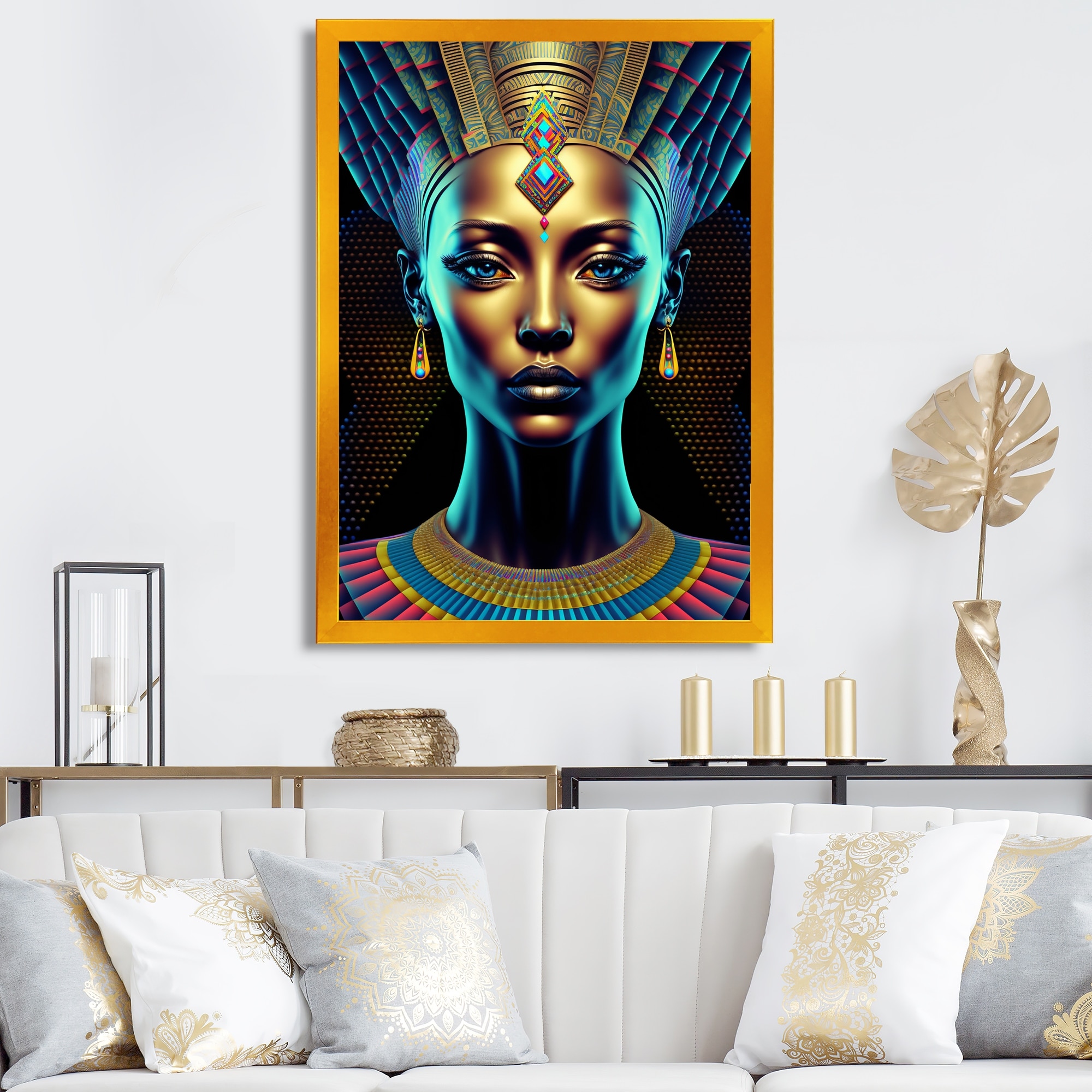 Designart "Egyptian Goddess Nefertiti II" Egyptian Woman Framed Canvas Print